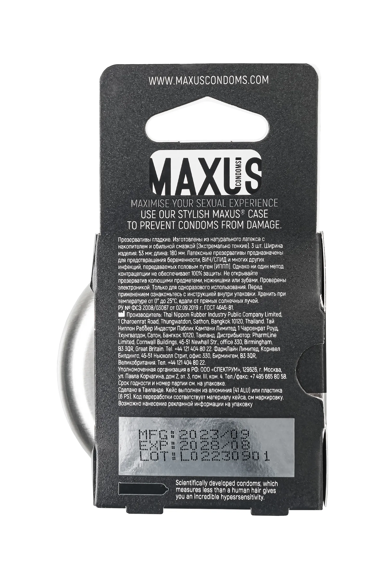 —Презервативы Maxus, тонкие, латекс, железный кейс, 18 см, 5,3 см, 3 шт.