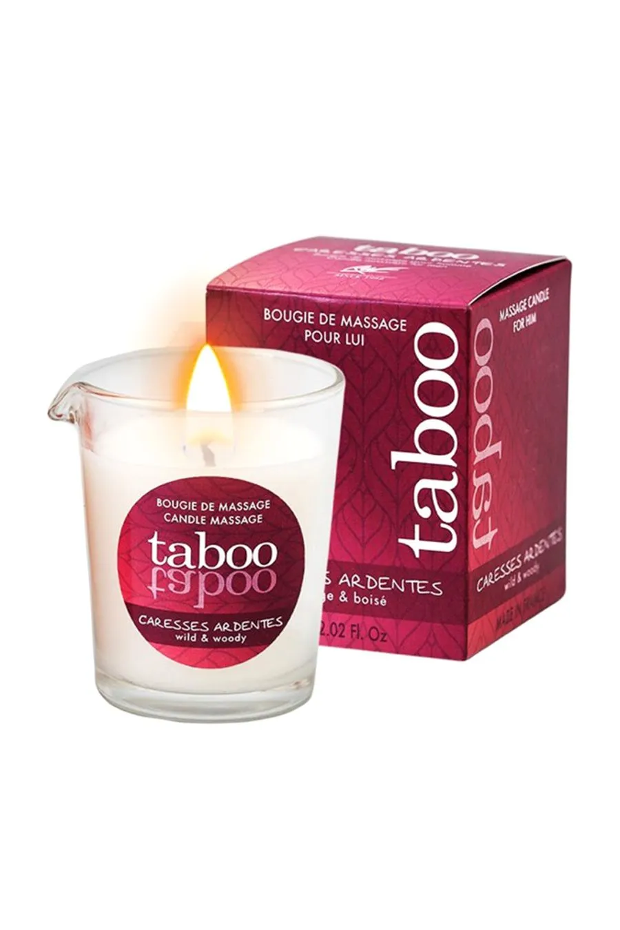 Taboo Caresses Ardentes не только пробуждает ваши чувства, но и обеспечивает глубокое расслабление благодаря натуральным ингредиентам, таким как соевое и кокосовое масла. Эти компоненты интенсивно питают и увлажняют кожу, оставляя её мягкой и шелковистой. Запах дикого папоротника наполняет атмосферу загадочными лесными нотами, создавая идеальные условия для погружения в интимные объятия.