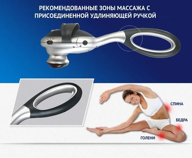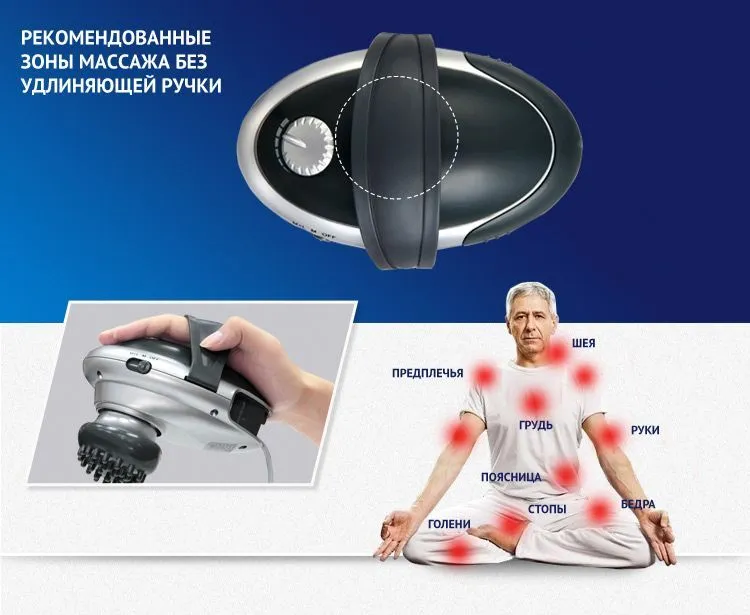 - Регулируемая интенсивность массажа регулятором на корпусе массажера