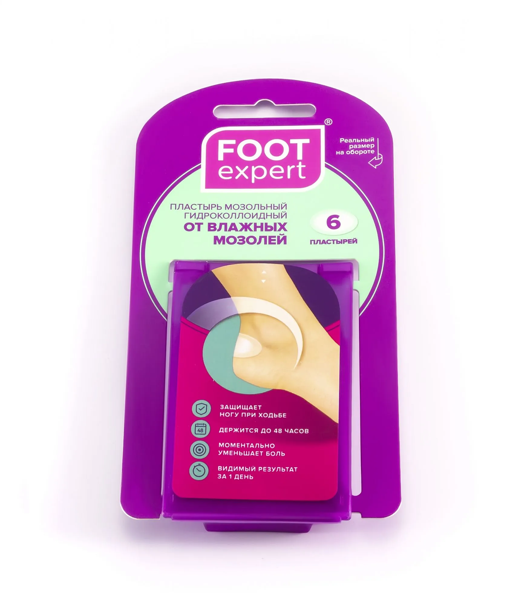 FOOT EXPERT - экспресс-решение при влажных мозолях. FOOOT Expert производится по гидроколлоидной технологии, которая позволяет средству работать по принципу второй кожи. В состав пластыря входит гидроколлоидный полимер, состоящий из мельчайших частиц, которые образуют на поверхности тонкую пленку. При воздействии на пораженную кожу пленочка быстро впитывает отделяемую из раны жидкость, увлажняет поверхность кожи, хорошо пропускает воздух, не позволяет формироваться рубцам и корочкам при заживлении мозоли.