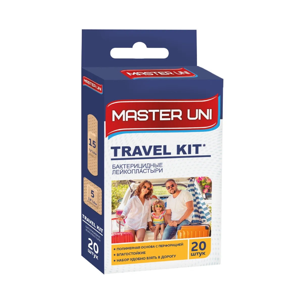 —MASTER UNI TRAVEL KIT Лейкопластырь бактерицидный на полимерной основе, 20 шт