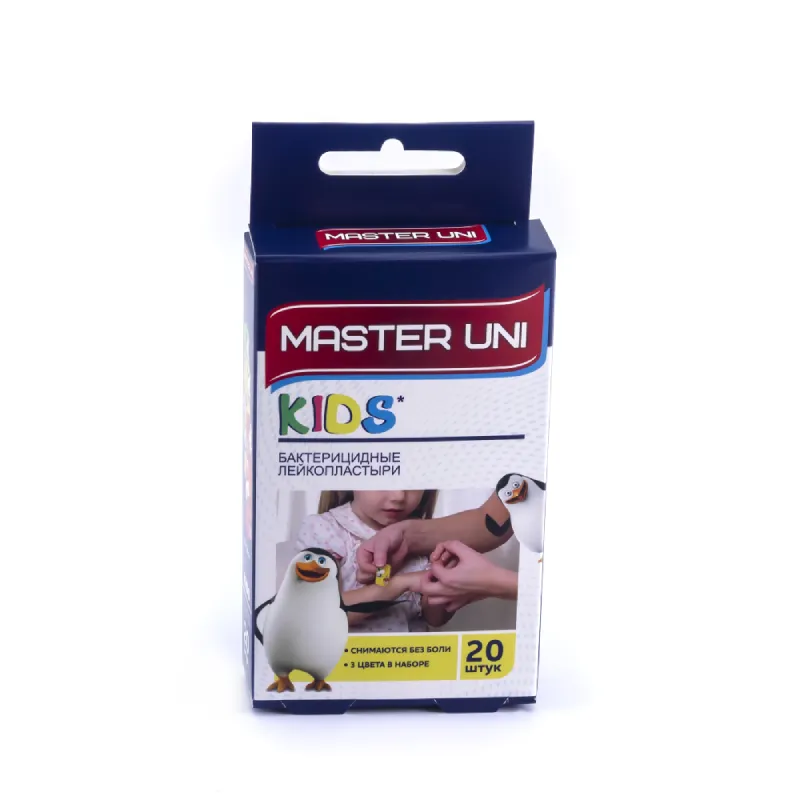- в упаковке 20 пластырей с изображением пингвинчиков;