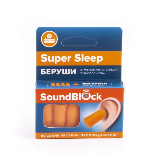 Беруши Soundblock Super Sleep предназначены для защиты органов слуха от различных шумов. Можно использовать для сна, путешествий, громких событий, плавания, для уменьшения дискомфорта во время авиапрелётов. Беруши имеют удобную конусообразную конструкцию, поэтому они вставляются в ушной канал и имеют высокий уровень шумоподавления. В комплекте идёт футляр для хранения и переноски.