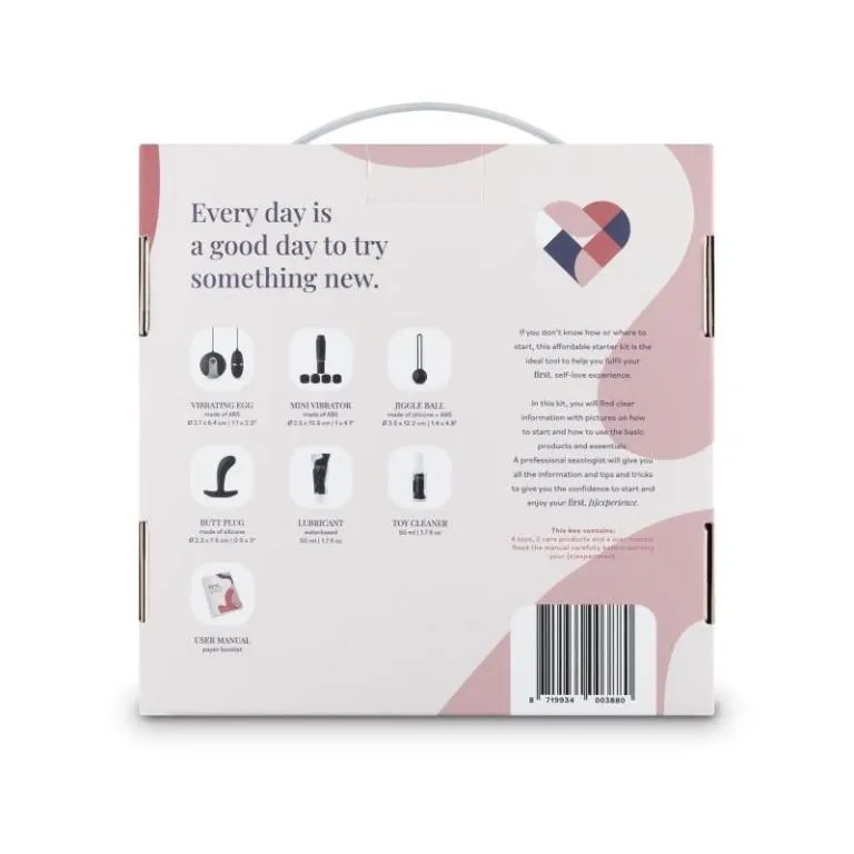 Стартовый набор Self-Love [S] Experience - идеальный набор для начинающих для женщин, которым интересно использовать разные виды игрушек, но практически нет опыта. Но коробочка также станет приятным дополнением для семейной пары для увлекательного вечера в спальне. Удивительное содержание предлагает множество вариантов и множество возможностей узнать свое тело еще лучше! В коробке есть вибрационное яйцо с дистанционным управлением, мини-вибратор с 4 насадками, джингл-шар, анальная пробка, лубрикант на водной основе и флакон для чистки игрушек. Все игрушки изготовлены из безопасного для тела материала и удобны в использовании. Обширное и откровенно написанное руководство (на английском языке) изобилует объяснениями, что можно и чего нельзя делать, и вселяет в вас достаточно уверенности, чтобы начать это новое путешествие.