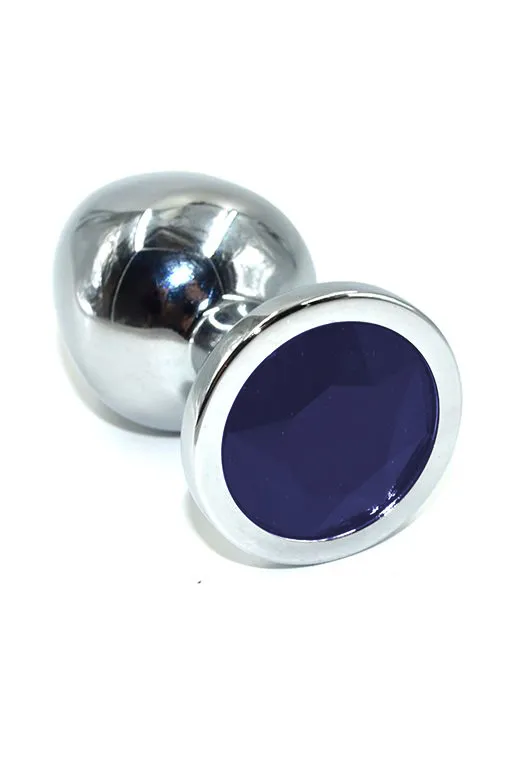 —Серебряная анальная пробка с тёмно-синим кристаллом, medium