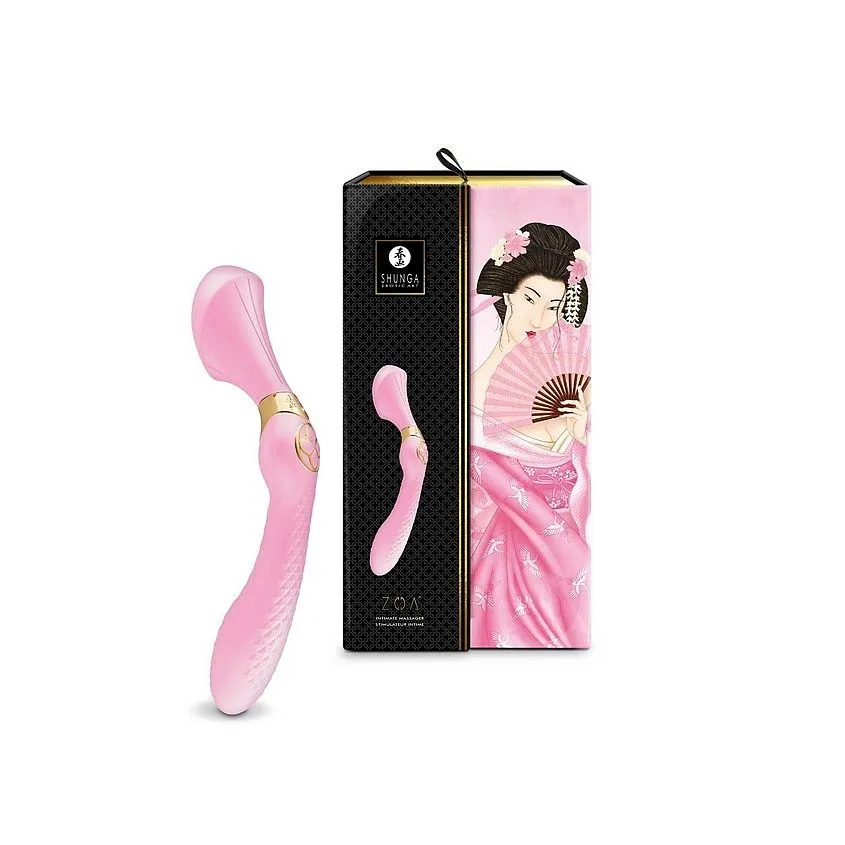 Вибратор Shunga ZOA — это игрушка с двумя вариантами использования: широкая головка для внешней стимуляции — с одной стороны, и длинный кончик для воздействия на зону G – с другой стороны. Необычная конструкция напоминает очертаниями мощный массажер: округлый маленький кончик шириной 5,4 см предоставляет большую зону для яркого воздействия по всему телу и головке клитора — в частности. Вагинальный же кончик — с рабочей длиной в 12,5 см и максимальный диаметром 3,7 см — имеет плавные очертания, небольшой изгиб и легкий рельеф, чтобы оказывать самые приятные ощущения и дополнительную стимуляцию. Игрушка хороша тем, что позволит вам получить сразу несколько вариантов удовольствия - соло или с партнером.