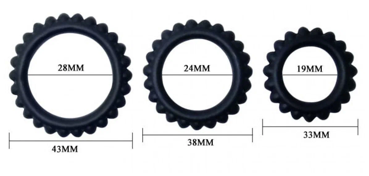Вы можете использовать только одно кольцо, надев его на основание полового члена, либо все три одновременно, распределив их по всей длине, либо использовать одно из колец для плотного обхвата мошонки.