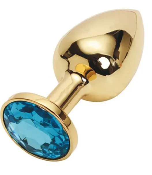 Анальная пробка из металла под золото с ярким кристаллом  внесет разнообразие в вашу интимную жизнь. Обладает сглаженной  формой, что позволяет обеспечить легкое введение и комфортное длительное ношение.  Снабжена ограничительным основанием для безопасного использования.  Характеристики:  Общая длина 7,6 см, рабочая длина 6 см, наибольший диаметр: 2,8 см., вес 60 гр. Упаковка: индивидуальный тканевый мешочек и коробка.