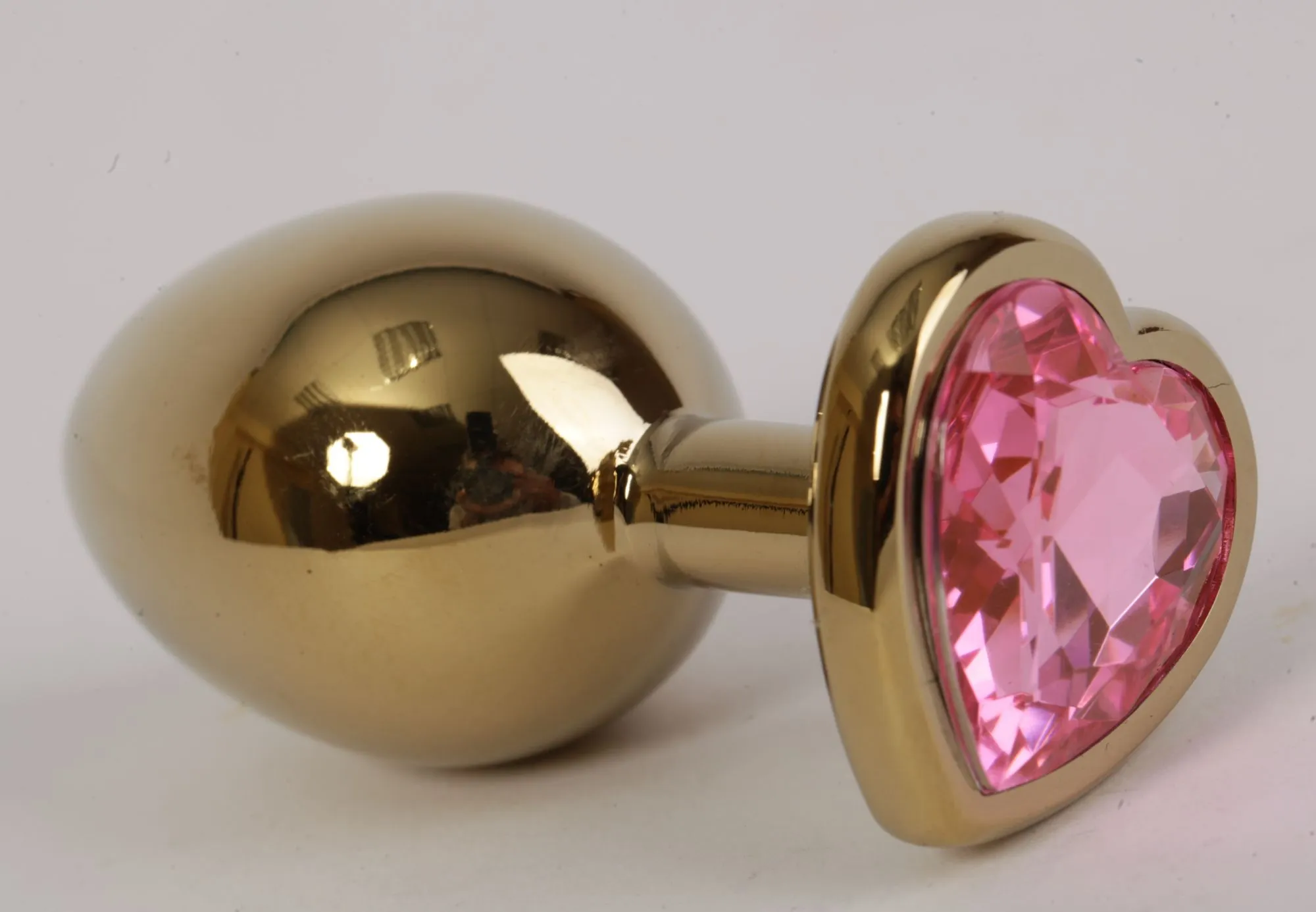 Анальная пробка под золото с ярким кристаллом в форме сердечка внесет разнообразие в вашу интимную жизнь. Обладает сглаженной формой, что позволяет обеспечить легкое введение и комфортное длительное ношение. Снабжена ограничительным основанием для безопасного использования. Характеристики: Общая длина 7,5 см, высота основания 1 см, рабочая длина 6,5 см,наибольший диаметр: 2,8 см., вес 65 гр. Упаковка: индивидуальный тканевый мешочек и коробка.