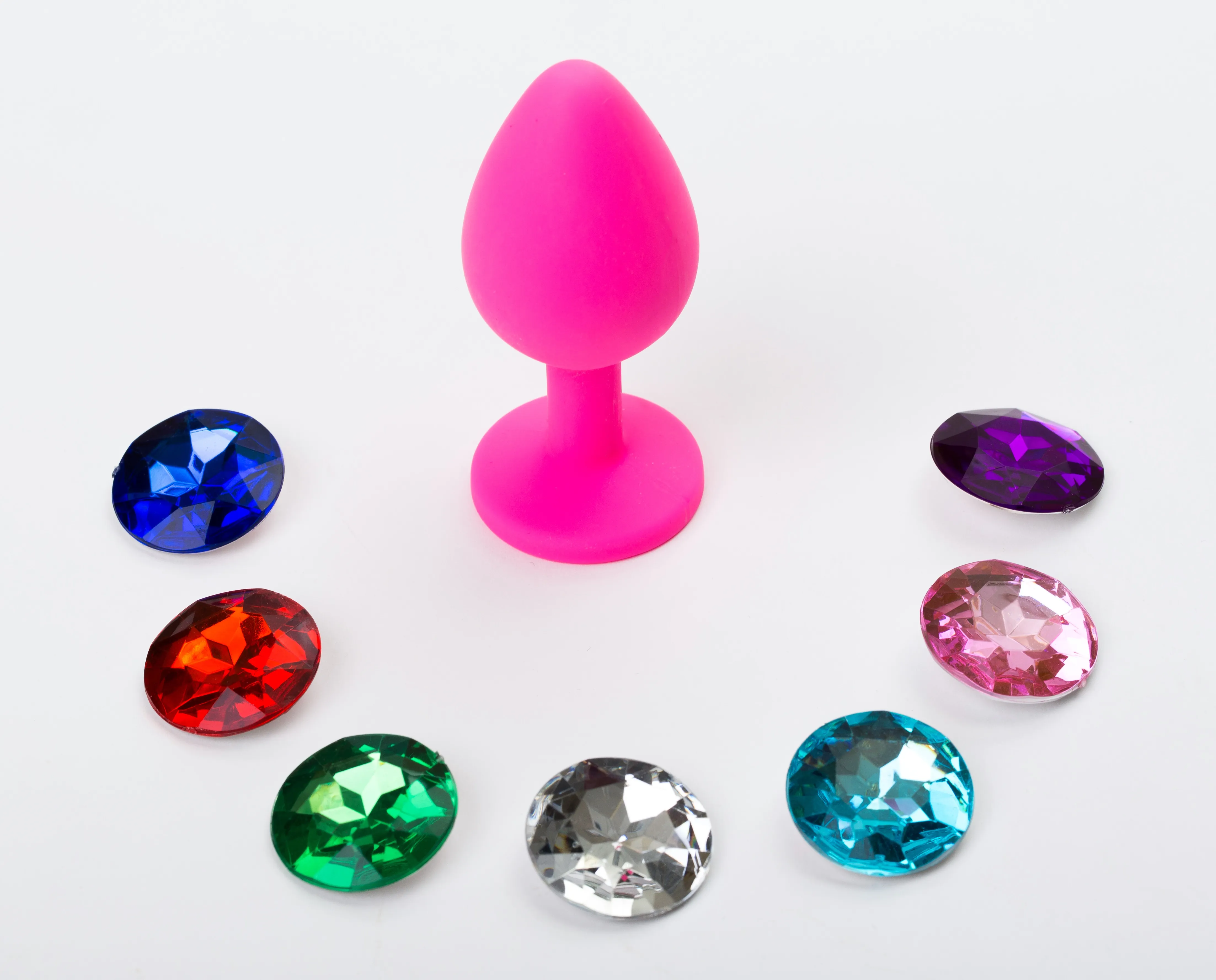 Розовая анальная пробка с набором из семи разноцветных стразов внесет разнообразие в вашу интимную жизнь. Обладает конусной формой, что позволяет обеспечить легкое введение. Характеристика: длина- 9,5 см, рабочая длина- 6 см, диаметр- 4 см. Материал- силикон.