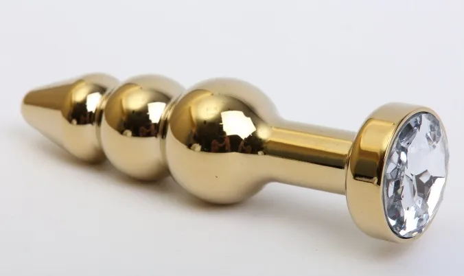 Анальная пробка под золото с ярким кристаллом внесет разнообразие в вашу интимную жизнь. Обладает сглаженной рельефной формой, что позволяет обеспечить легкое введение и вызывает дополнительные пикантные ощущения при использовании. Снабжена ограничительным основанием для безопасного использования. Характеристики: Общая длина 11,2 см, высота основания 2,8 см, наибольший диаметр: 2,9 см., вес 100 гр. Упаковка: индивидуальный тканевый мешочек и коробка.