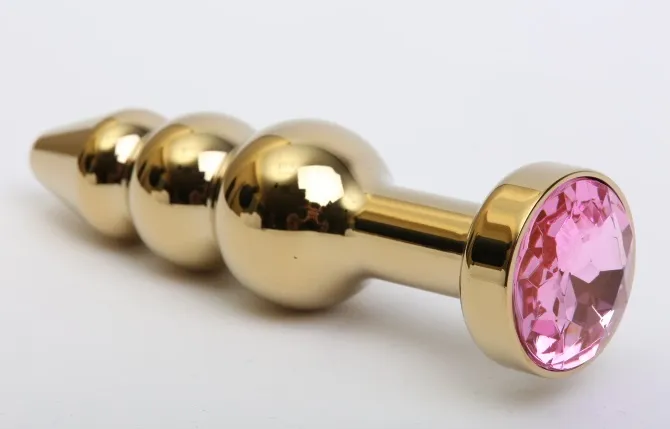 Анальная пробка под золото с ярким кристаллом внесет разнообразие в вашу интимную жизнь. Обладает сглаженной рельефной формой, что позволяет обеспечить легкое введение и вызывает дополнительные пикантные ощущения при использовании. Снабжена ограничительным основанием для безопасного использования. Характеристики: Общая длина 11,2 см, высота основания 2,8 см, наибольший диаметр: 2,9 см., вес 100 гр. Упаковка: индивидуальный тканевый мешочек и коробка.