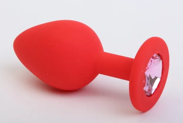Пробка силиконовая красная с розовым стразом 7,1х2,8см 47403-MM