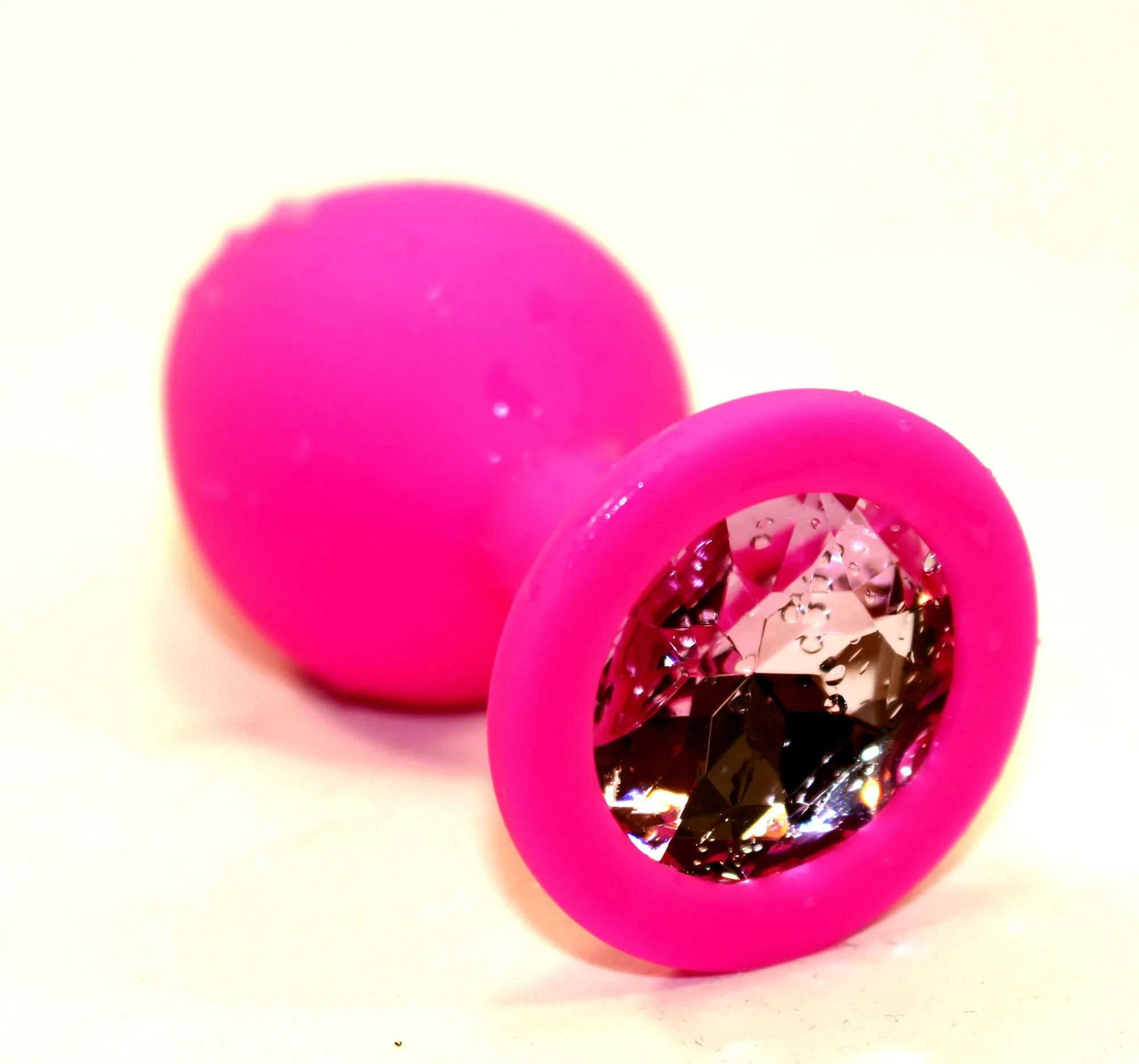 Розовая анальная пробка с розовым стразом, вносит разнообразие в вашу интимную жизнь. Обладает конусной формой, что позволяет обеспечить легкое введение. Характеристика: общая длина- 9,5 см, рабочая длина- 9 см, максимальный диаметр- 4 см. Материал- силикон. Упаковка: бархатный мешок.