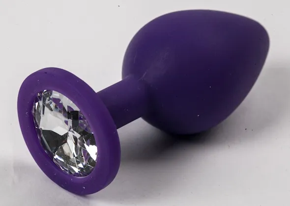 Фиолетовая анальная пробка с прозрачным кристаллом, вносит разнообразие в вашу интимную жизнь. Обладает конусной формой, что позволяет обеспечить легкое введение. Характеристика: общая длина- 9,5 см, рабочая длина- 9 см, максимальный диаметр- 4 см. Материал- силикон. Упаковка: бархатный мешок.