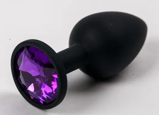 Черная анальная пробка с фиолетовым стразом, вносит разнообразие в вашу интимную жизнь. Обладает конусной формой, что позволяет обеспечить легкое введение. Характеристика: общая длина- 7,5 см, рабочая длина- 7,1 см, диаметр- 2,8 см. Материал- силикон. Упаковка: бархатный мешок.