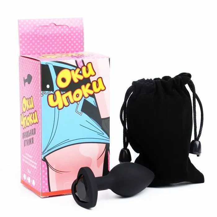 Пробка анальная "Сердечко", силиконовая, чёрная, диаметр 2,8 см