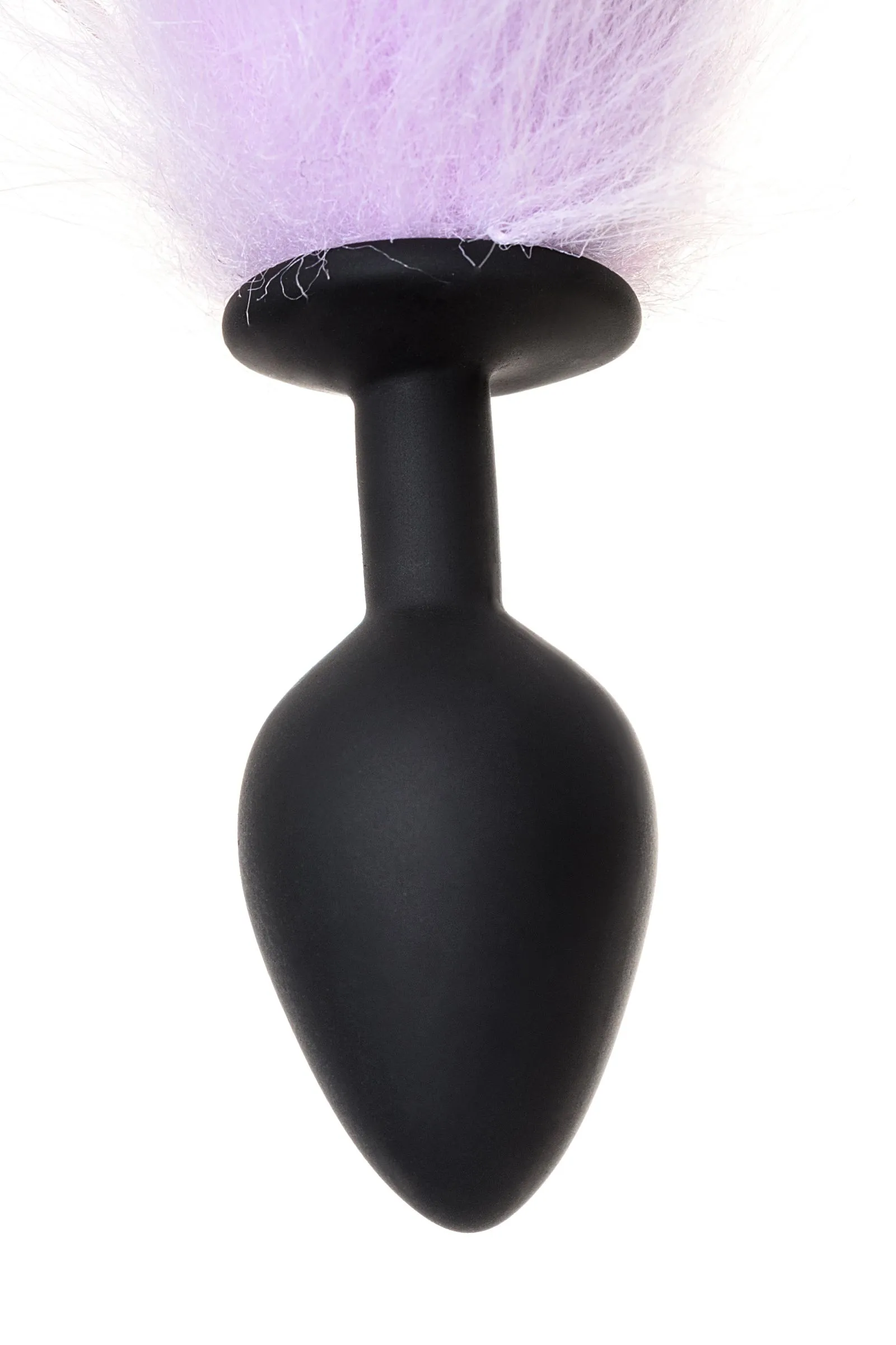 —Анальная втулка с бело-фиолетовым хвостом POPO Pleasure by TOYFA, M, силикон, черная, 45 см, Ø 3,3 с