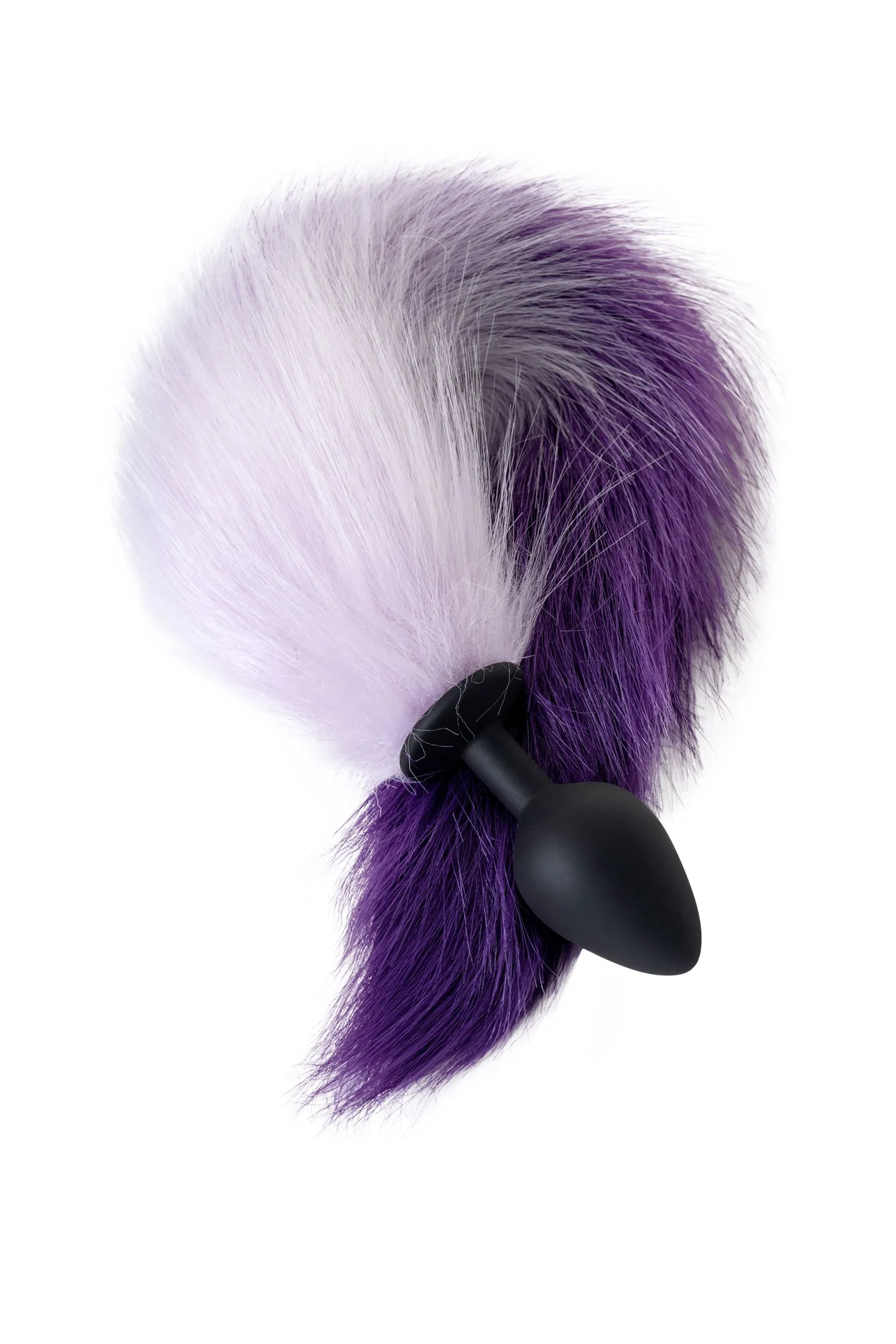 Анальная втулка с бело-фиолетовым хвостом POPO Pleasure by TOYFA, M, силикон, черная, 45 см, Ø 3,3 с