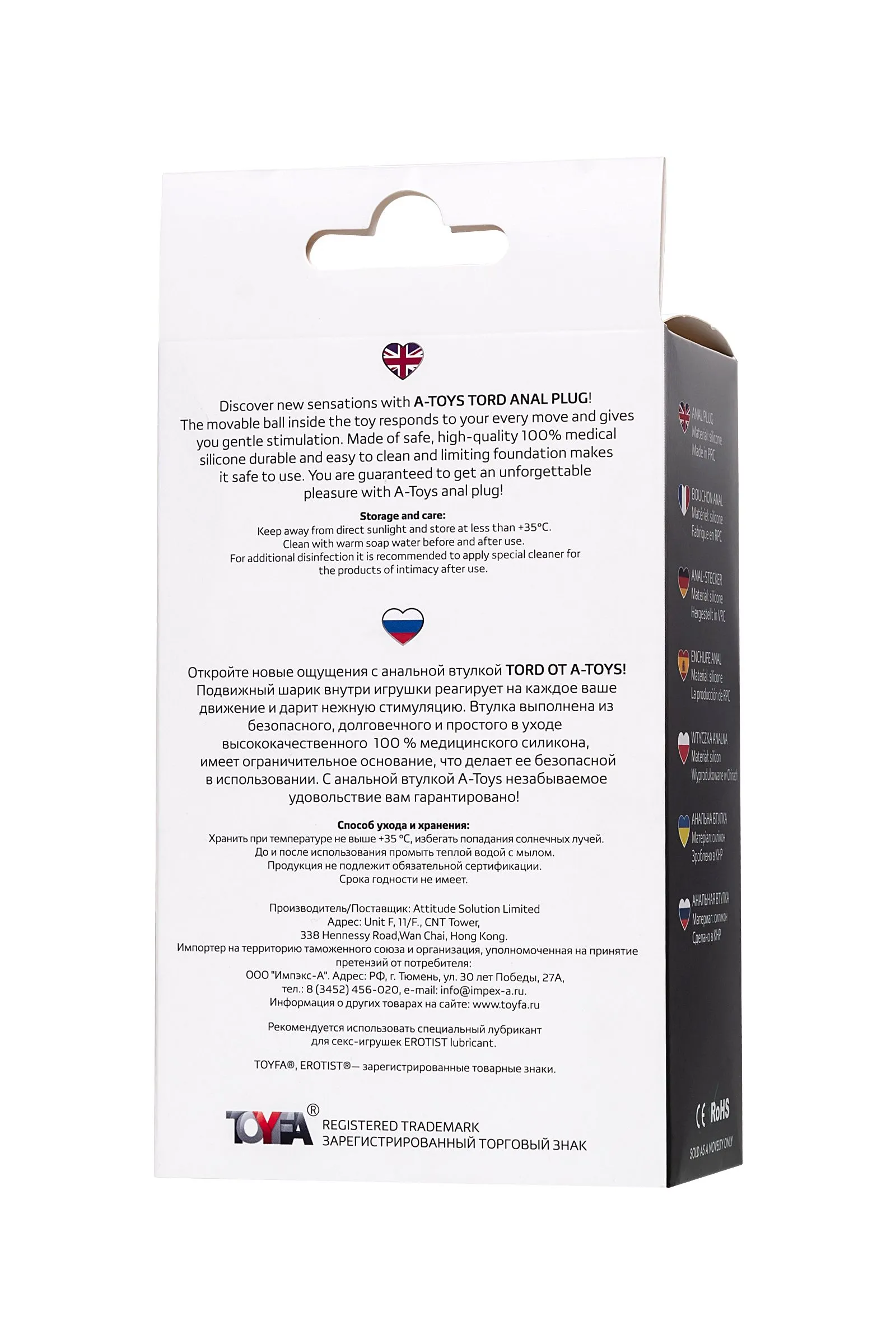 Откройте новые ощущения с анальной втулкой Tord от A-Toys! Подвижный шарик внутри игрушки реагирует на каждое ваше движение и дарит нежную стимуляцию. Втулка выполнена из безопасного, долговечного и простого в уходе высококачественного 100 % медицинского силикона, имеет ограничительное основание, что делает ее безопасной в использовании. С анальной втулкой A-Toys незабываемое удовольствие вам гарантировано! Общая длина: 10,5 см Рабочая длина: 8,5 см Диаметр: 1-3,8 см Вес: 96 гр