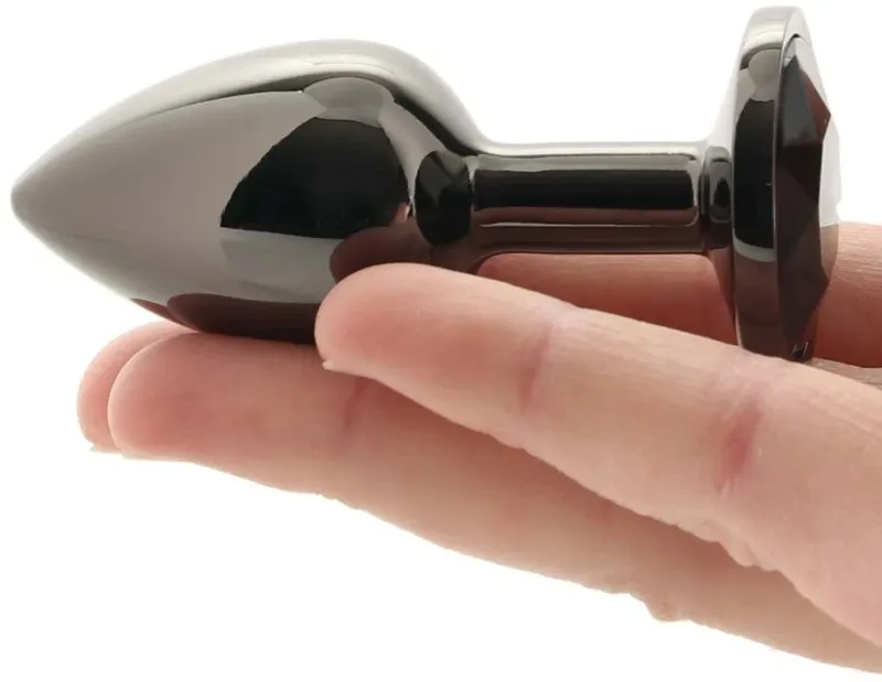 —Черная алюминивая анальная пробка с кристаллом Small