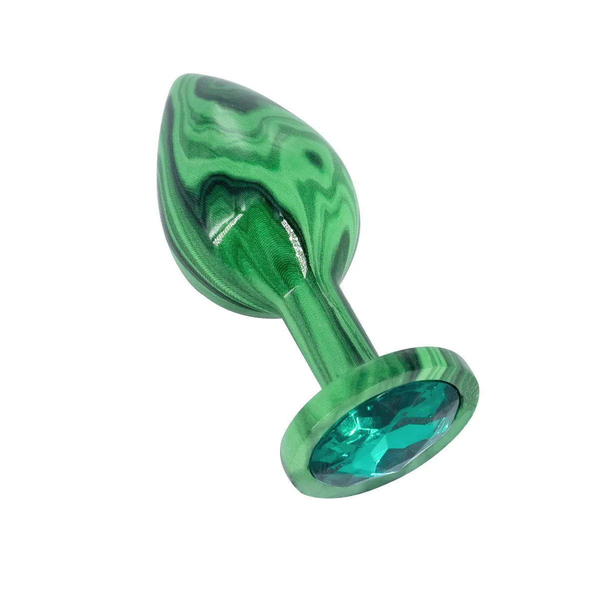 Эмалированная алюминивая анальная пробка с мраморным узором и кристаллом – это декоративное украшение, имеющее проникающую анальную часть и имитацию драгоценного камня круглой формы в основании. Идеально подходит для украшения тела, сужения влагалища, подготовки к анальному сексу.