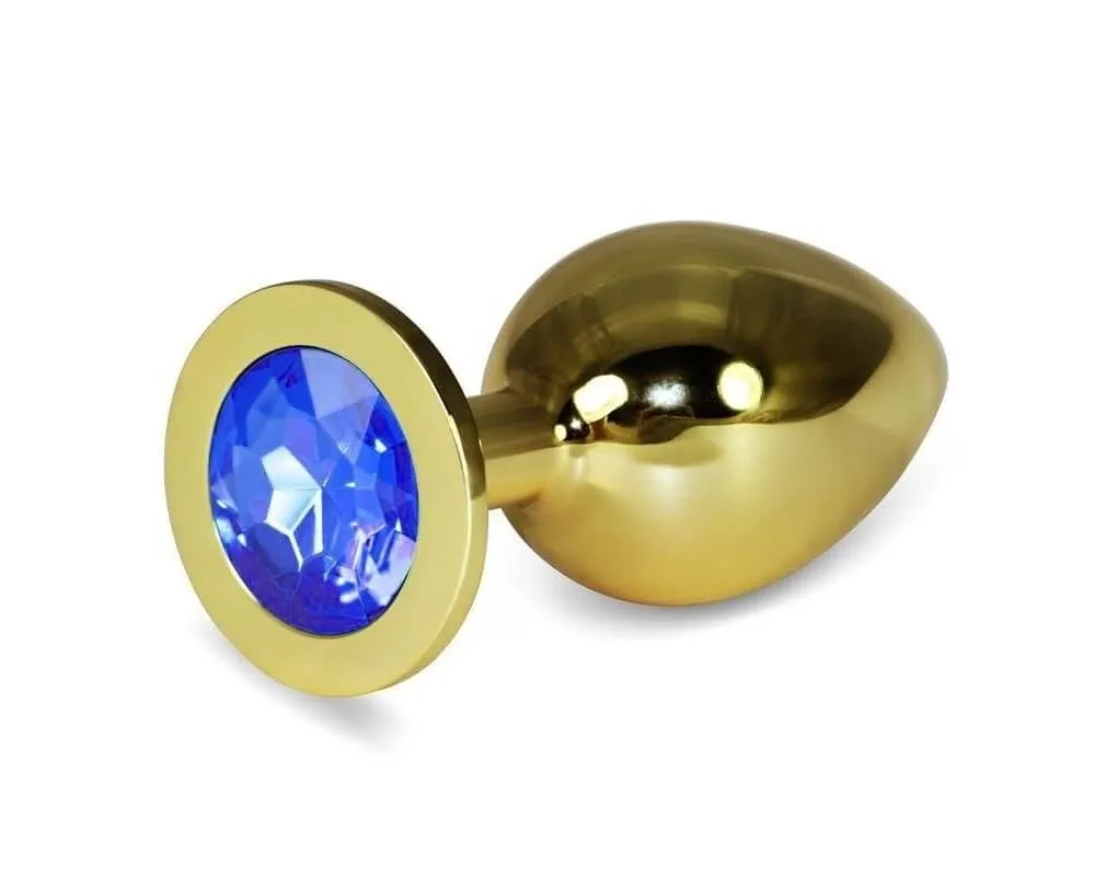 Шикарную анальную пробку большого размера смогут по достоинству оценить любители изысканных удовольствий! Благодаря своей безукоризненно гладкой поверхности и зауженному кончику пробка легко вводится в анус и позволяет деликатно подготовиться к анальному сексу. Основание пробки декорировано крупным сверкающим камнем синего цвета, придающим ей пикантности. Анальная пробка выполнена из металла золотистого цвета, полностью гипоаллергенна и не имеет характерного запаха.