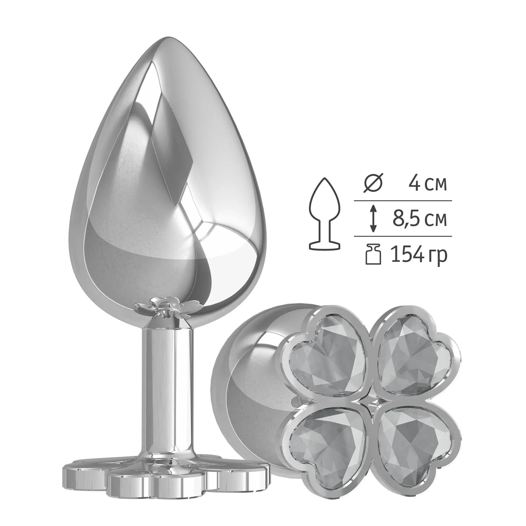 —Анальная втулка Silver большая с розовым кристаллом "Клевер"
