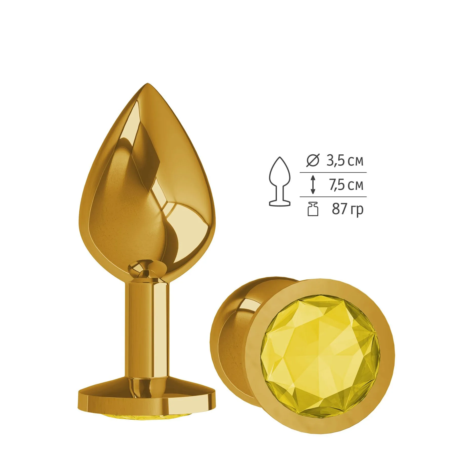 —Анальная втулка средняя, золотая с желтая кристаллом