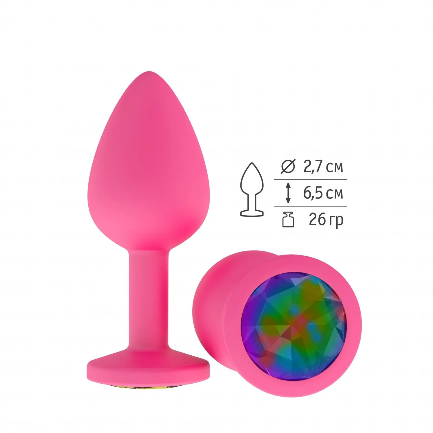 —Пробка силиконовая розовая с разноцветным кристаллом