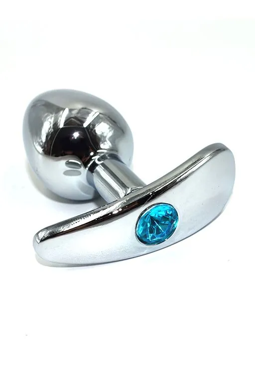 Серебряная анальная пробка для ношения с нежно-голубым кристаллом Small