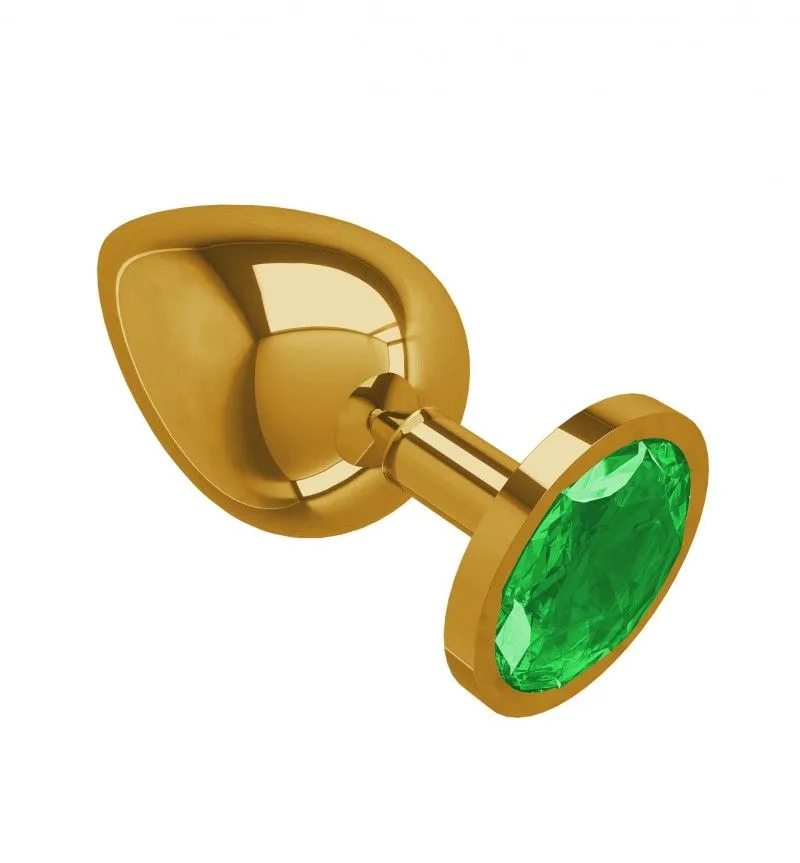 —Анальная втулка Gold большая с зеленым кристаллом