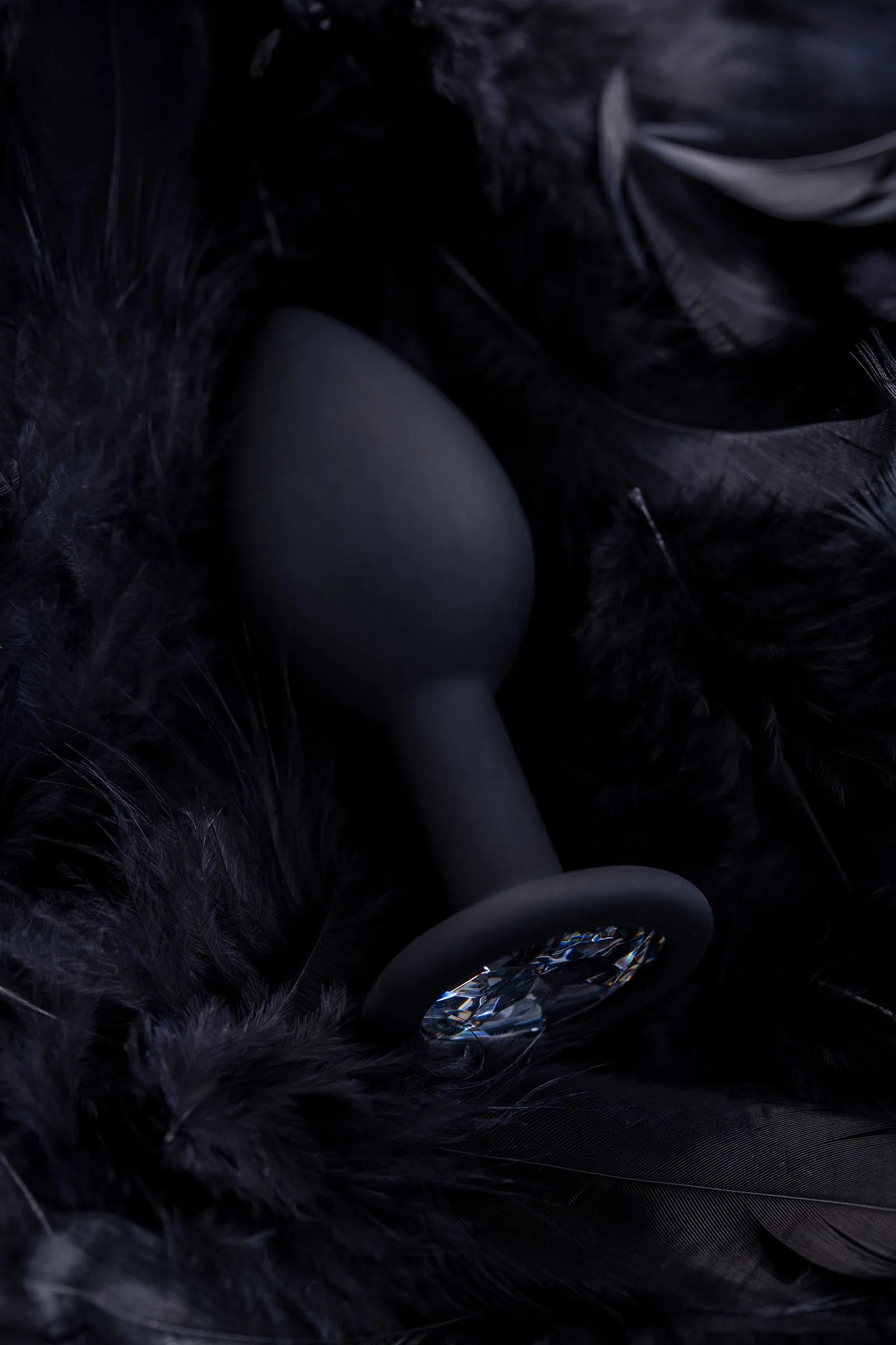 Анальная втулка POPO Pleasure by TOYFA со стразом S, силикон, черная, 7,2 см, Ø 2,8 см, 25 г
