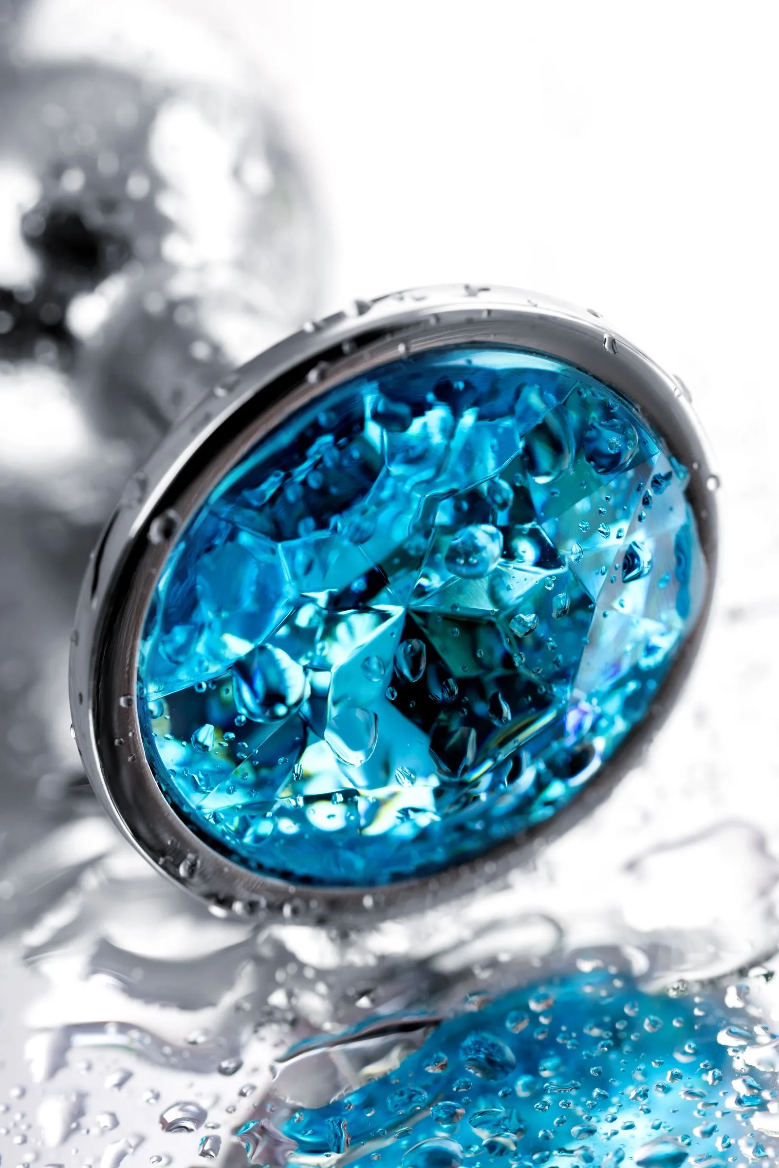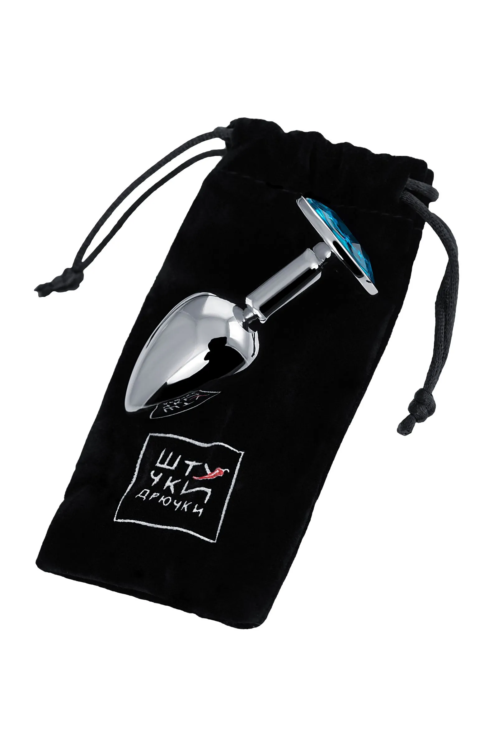 —Анальная втулка Штучки-дрючки, металл, серебряная, с голубым кристаллом
