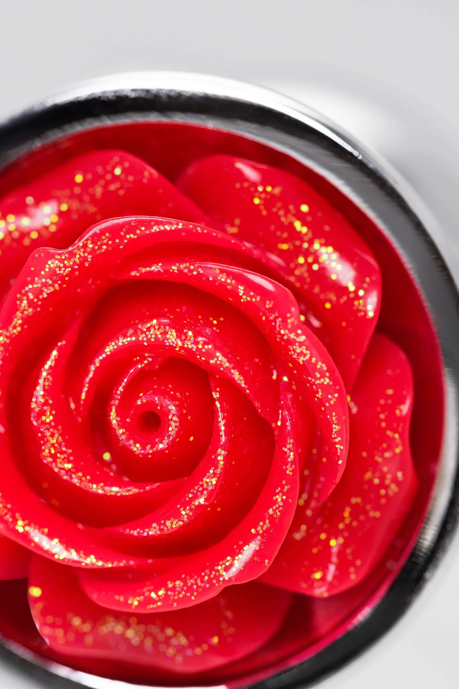 Небольшая металлическая анальная втулка, украшенная алым бутоном розы, призвана внести разнообразие в сексуальные развлечения. Размер втулки подходит для начинающих – диаметр всего 2,7 см. Ограничитель втулки украшен изящной розочкой яркого красного цвета. Глянцевые лепестки, выполненные из эпоксидной смолы, выглядят как настоящие, это украшение непременно добавит красоты и нежности в ваши отношения. Такая втулка может стать отличным подарком с намеком, тем более такой цветок никогда не завянет. Игрушка подходит для длительного ношения вне стен спальни. Такая игра добавит пикантности в вашу жизнь, ведь знать об этом украшении будете только вы и ваш партнер. Металл – один из самых безопасных и гигиеничных материалов, он прост в уходе, дружит со всеми видами смазок, подходит для длительного ношения, а кроме того отлично поддается играм с температурами: для получения новых ощущений нагревайте или охлаждайте втулку.