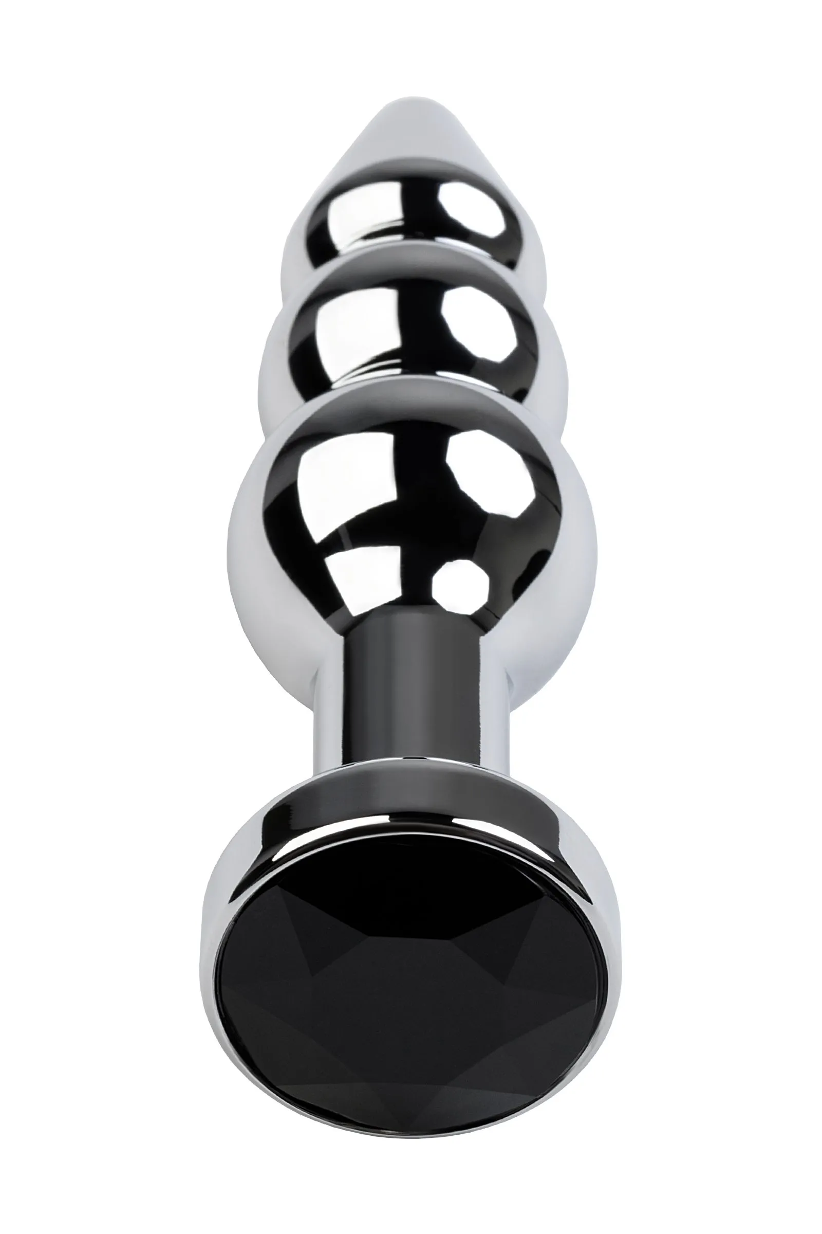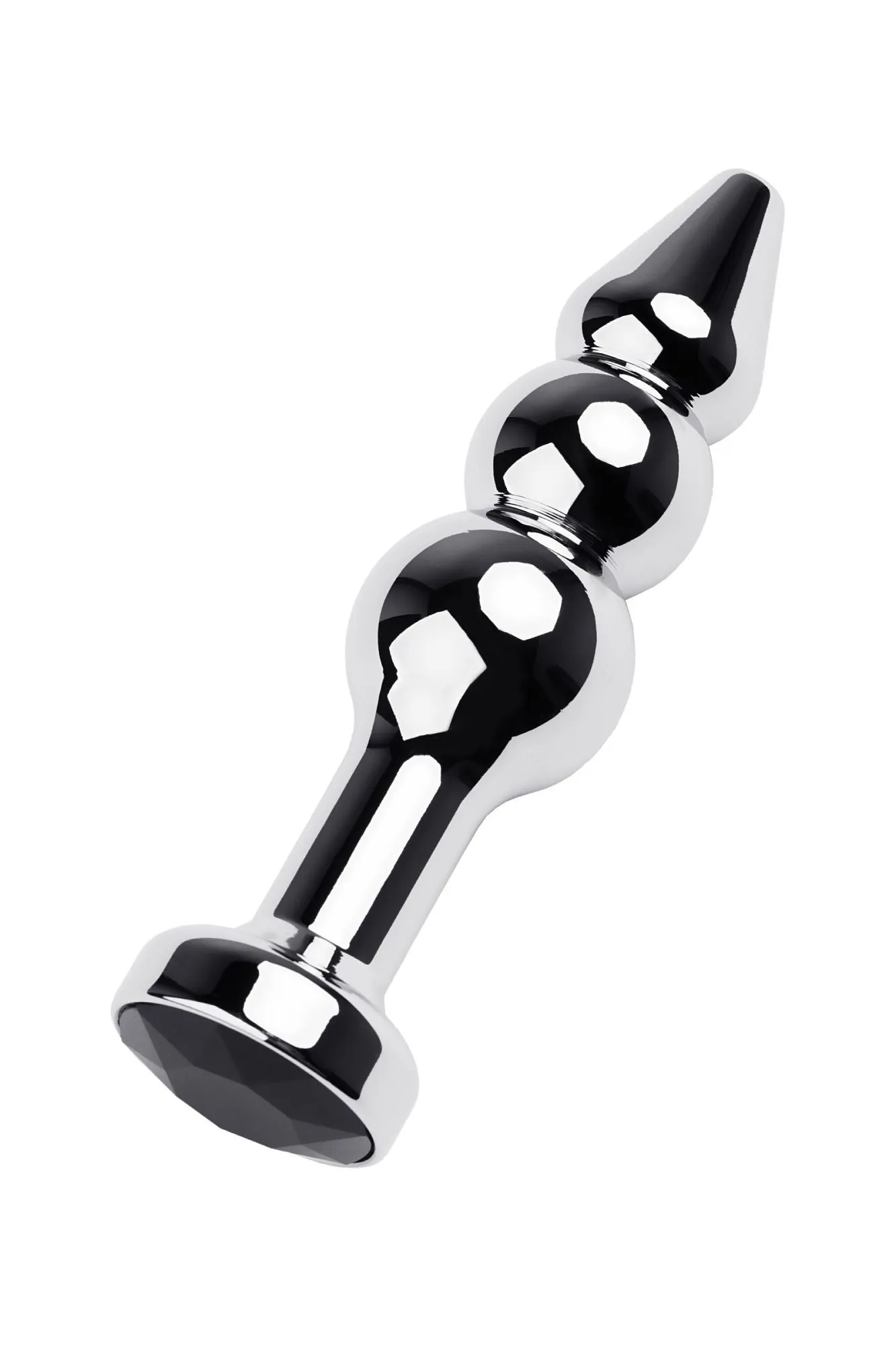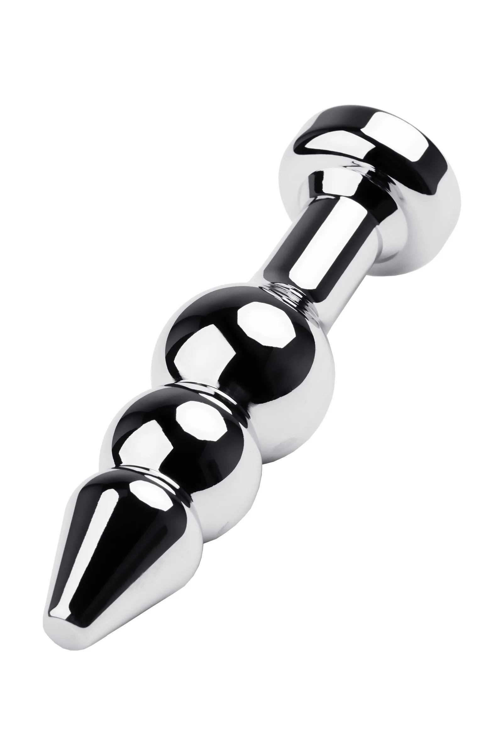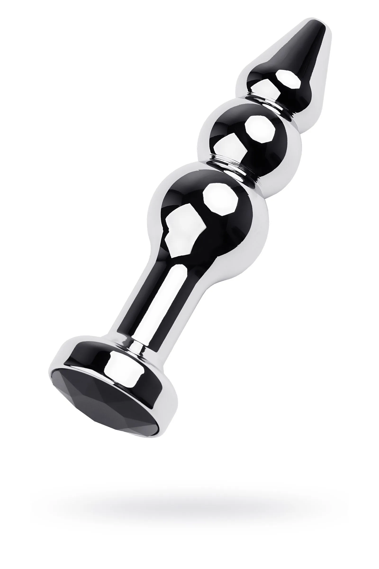Серебристая анальная втулка оригинальной формы со стразом цвета турмалин. Удобный для ввода маленький носик плавно переходит в два шара. Еще одна особенность этой игрушки - удлиненное расстояние до стоппера.