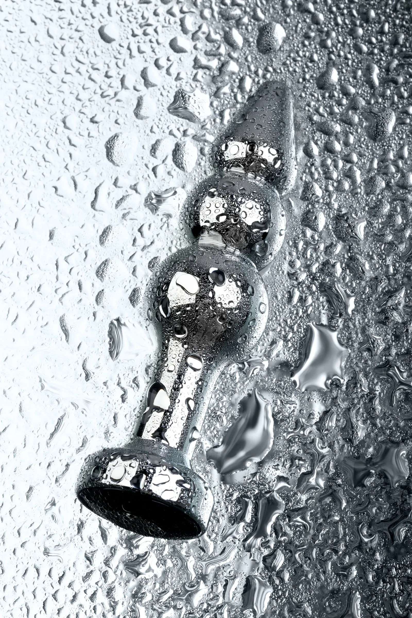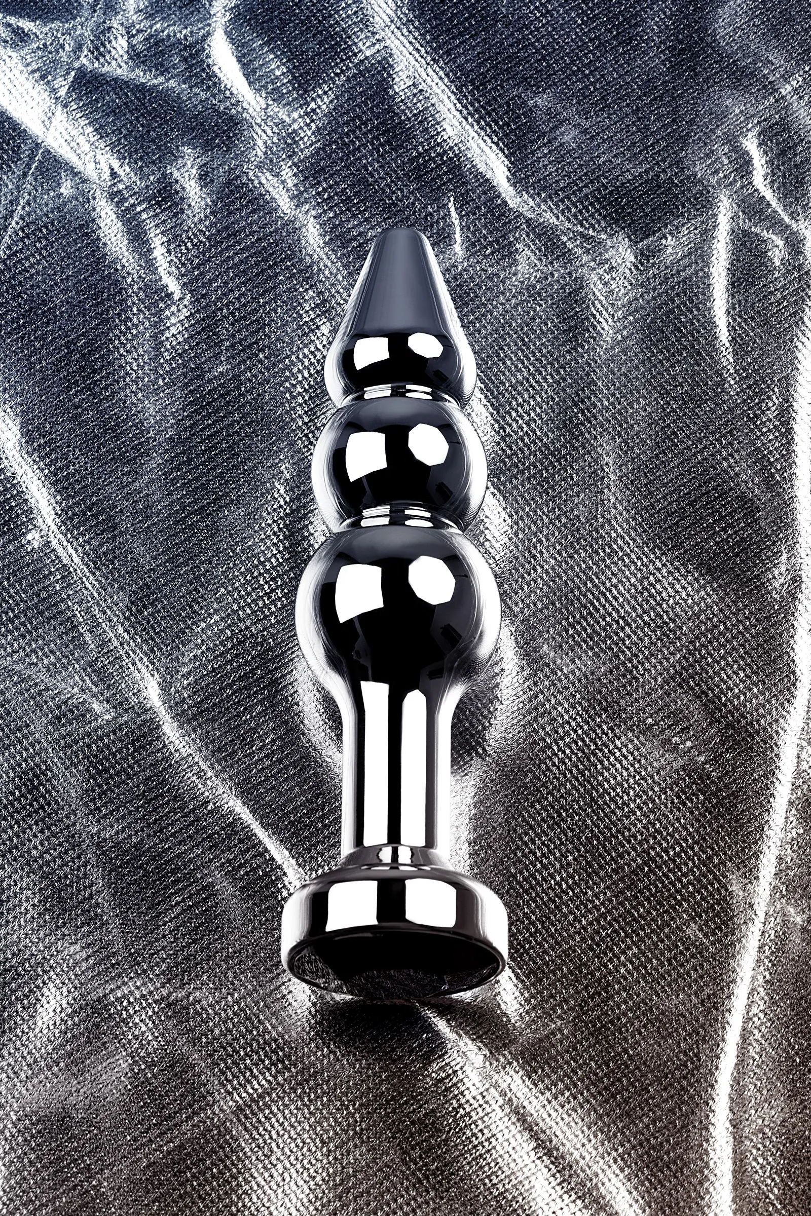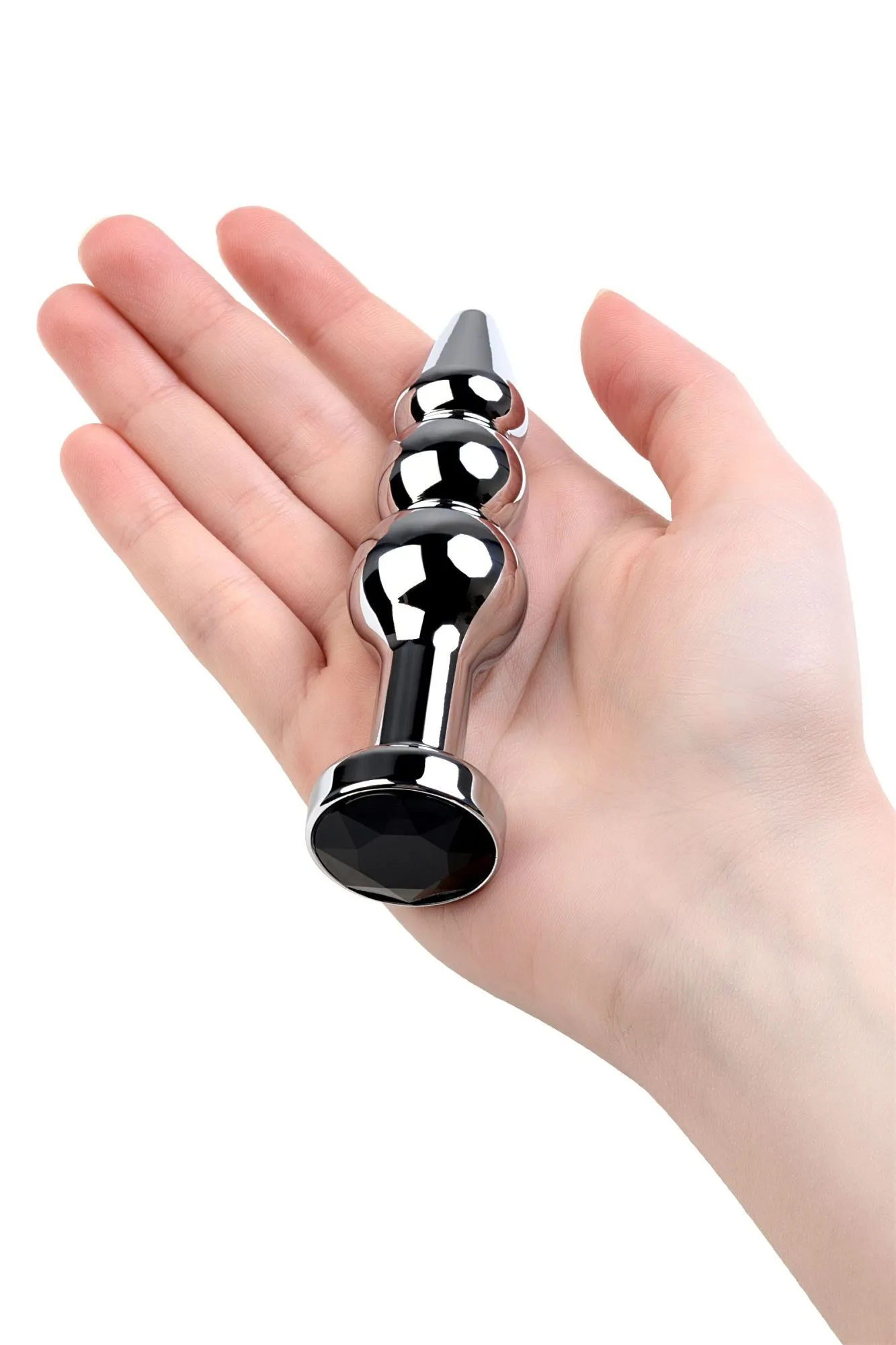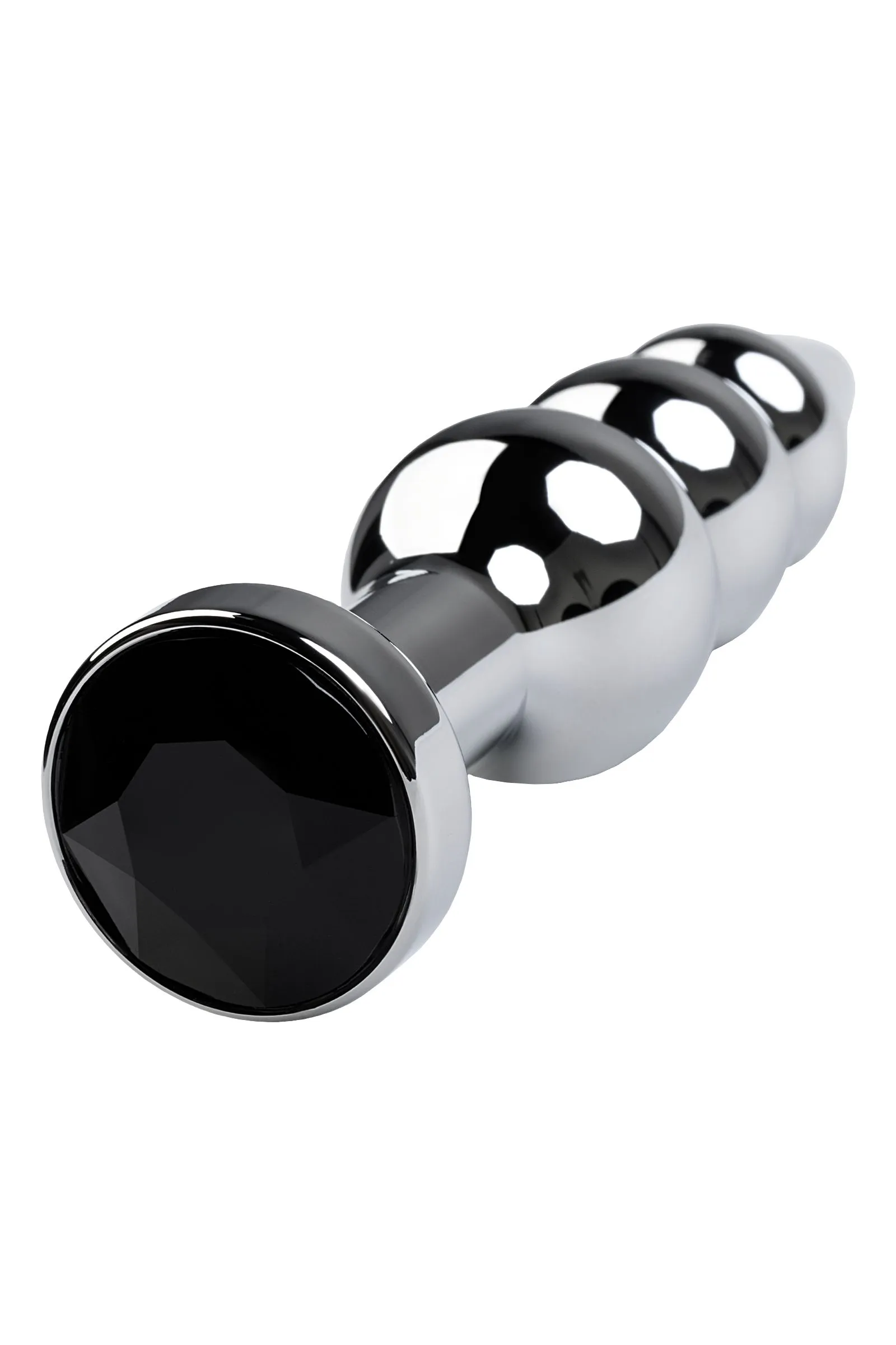 Серебристая анальная втулка оригинальной формы со стразом цвета турмалин. Удобный для ввода маленький носик плавно переходит в два шара. Еще одна особенность этой игрушки - удлиненное расстояние до стоппера.