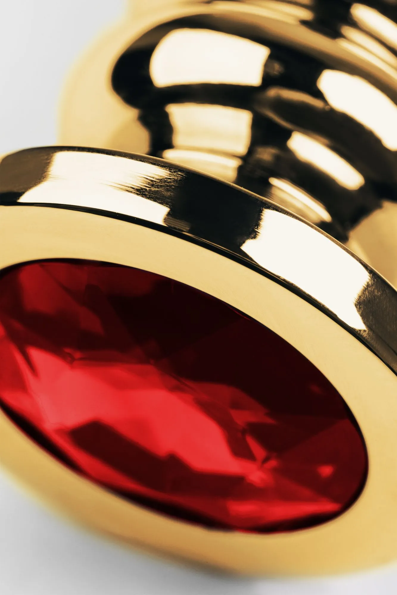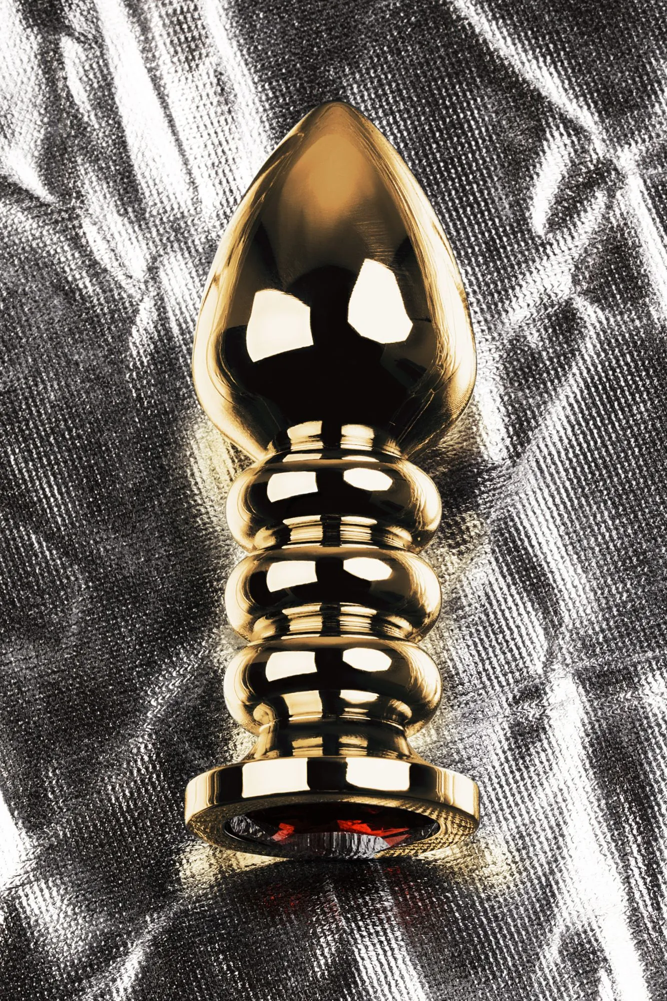 —Анальная втулка Metal by TOYFA, металл, золотая, с красным кристаллом, 10,5 см, Ø 4 см, 165 г