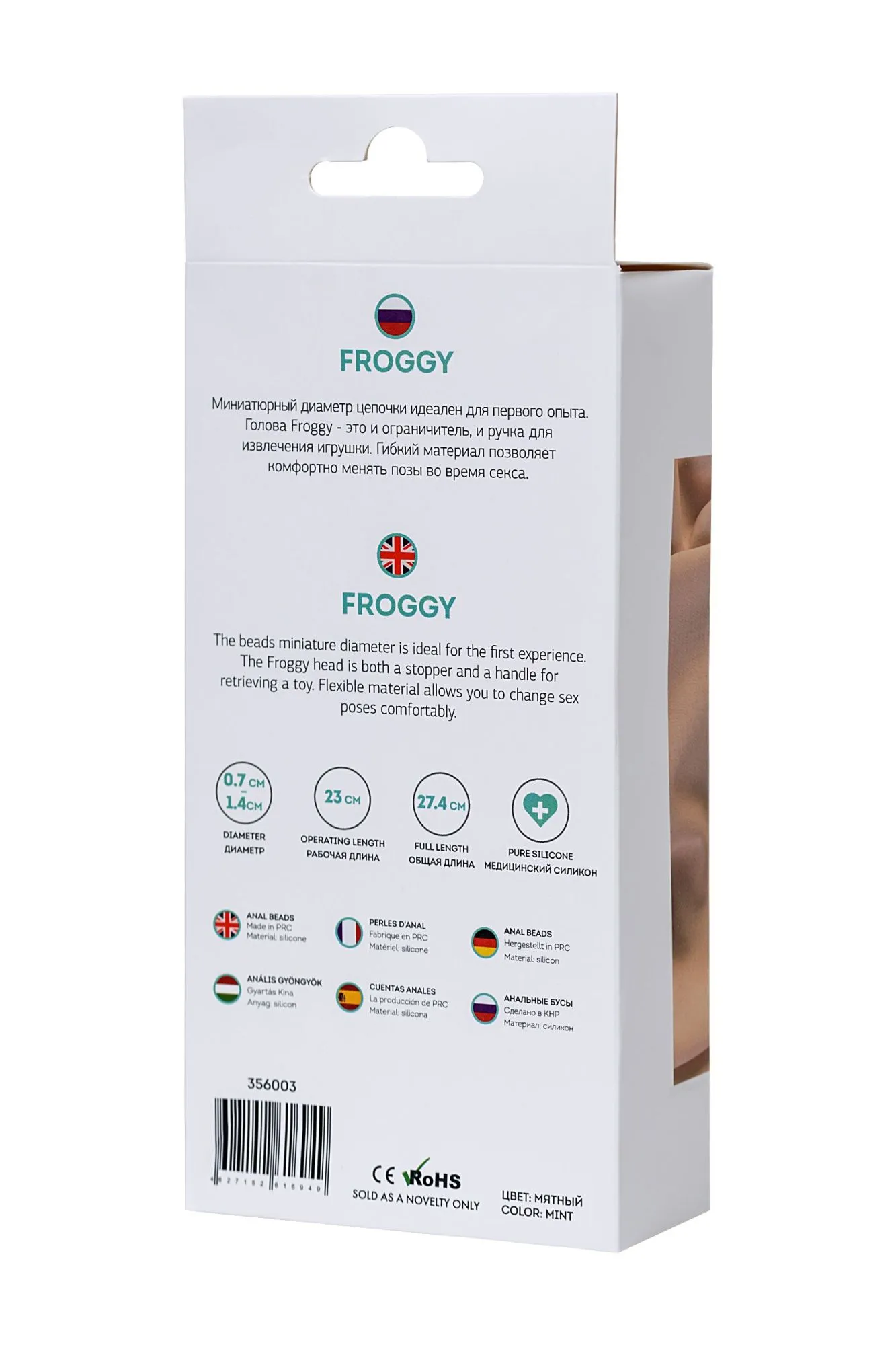 Froggy Миниатюрный диаметр цепочки идеален для первого опыта. Голова Froggy — это и ограничитель, и ручка для извлечения игрушки. Гибкий материал позволяет комфортно менять позы во время секса.