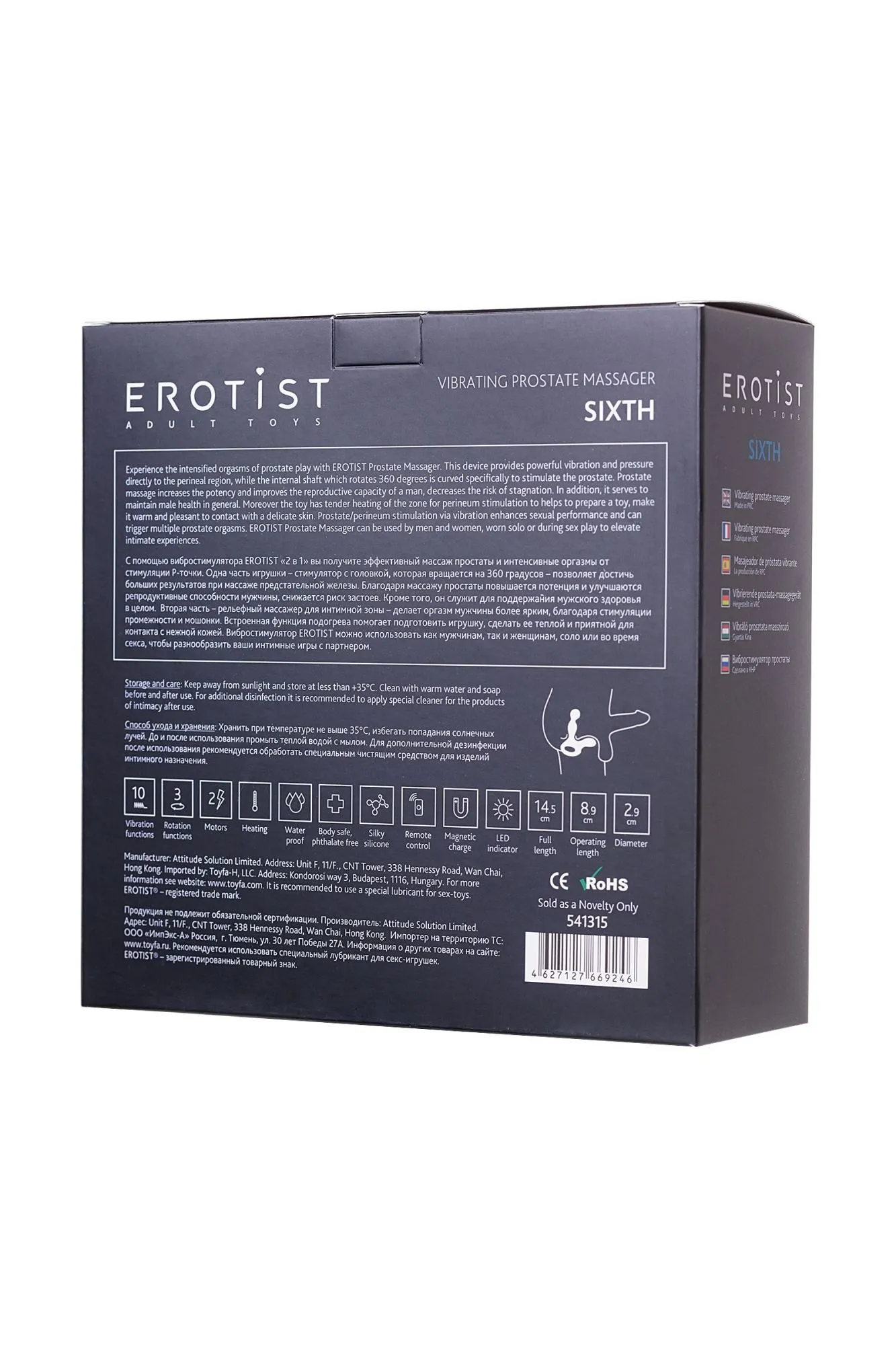 —Стимулятор простаты Erotist Sixth с ротацией головки, силикон, черный, 14,5 см