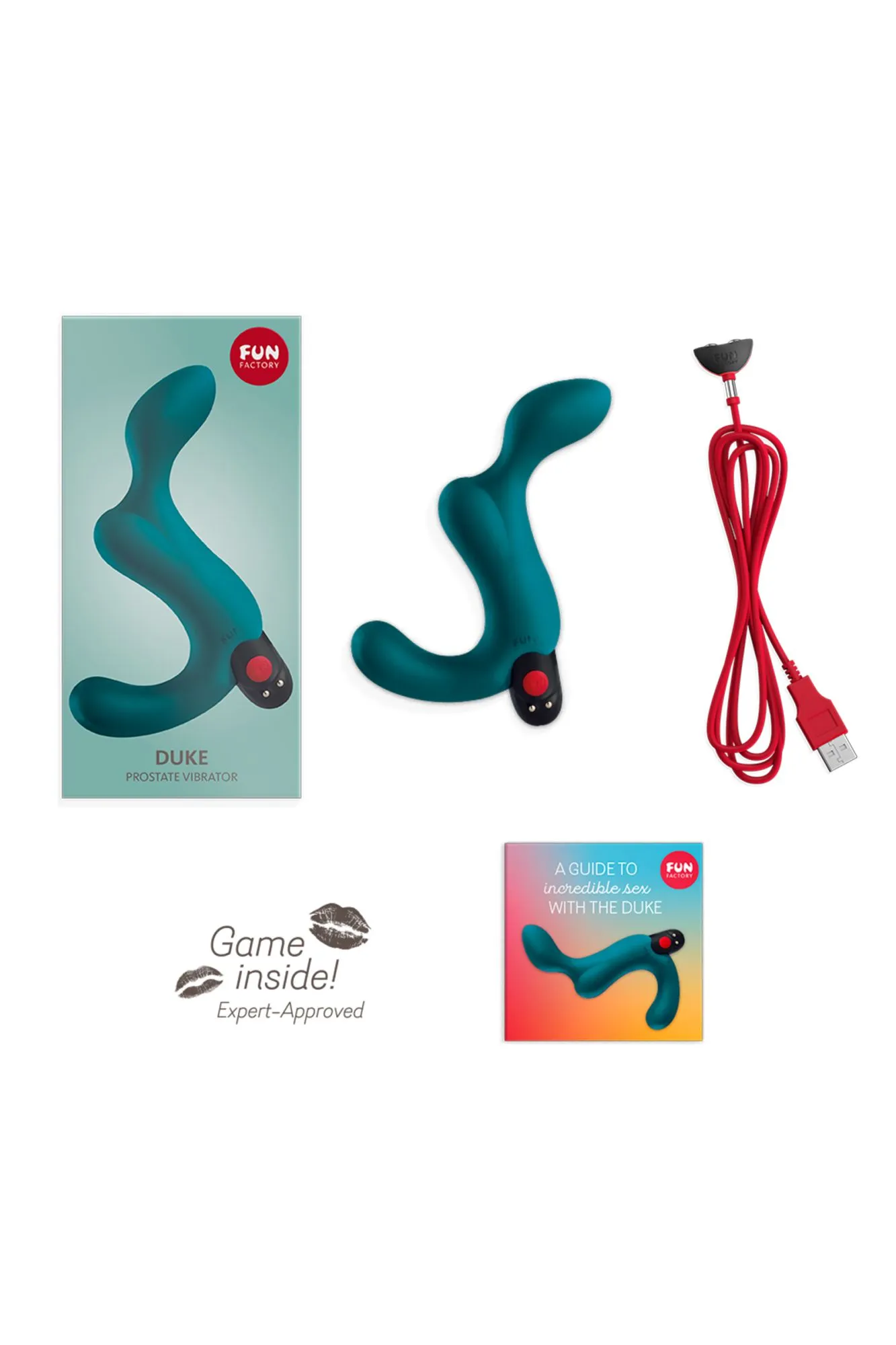 Ценители анальных радостей не захотят расставаться с DUKE. Благодаря его эргономической форме он оптимально приспосабливается к мужской анатомии и особенно интенсивно стимулирует своей энергичной вибрацией точку-P и промежность. Характерной особенностью этой игрушки является верхняя округленная форма, которая создает чувство совершенного слияния. Инновационная техника подзарядки CLICK 'N' CHARGE делает игрушку нескончаемым источником желания. Особенности: • стимулятор простаты класса люкс • эргономический дизайн • мощная вибрация • три ступени вибрации • корпус вибрации из 100% силикона • три программы • легкое, интуитивное использование • защищен от водных брызг • штекер для подзарядки FUN Magnetic Plug в комплекте Длина 16,7 см, Ø 3,7 см Вся продукция Fun Factory производится 100% в Германии.