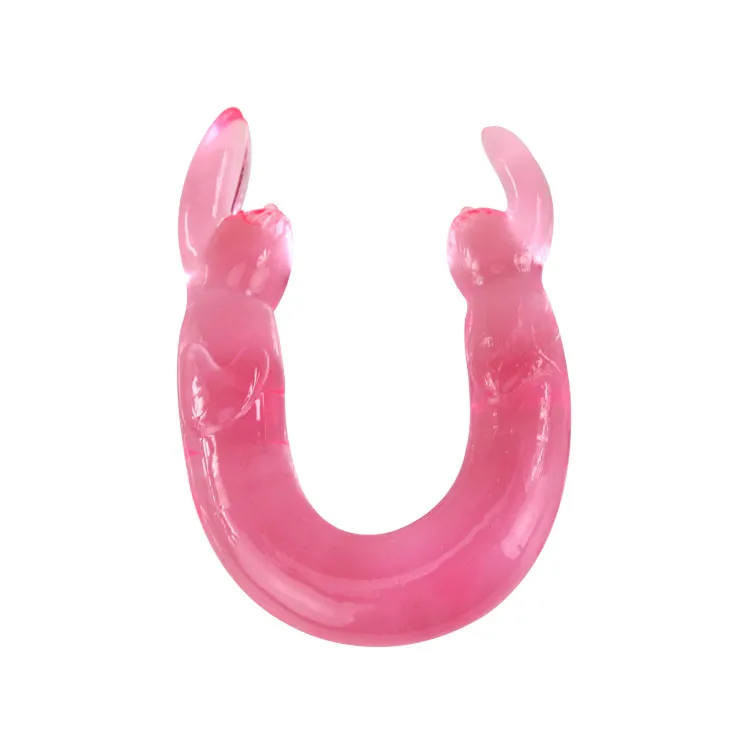 Гелевый двойной фаллоимитатор розового цвета. Головки выполнены в виде зайчиков. Немного рельефный и гибкий. Материал ПВХ. Общая длина 31 см, диаметр 3 см. Упаковка блистер.