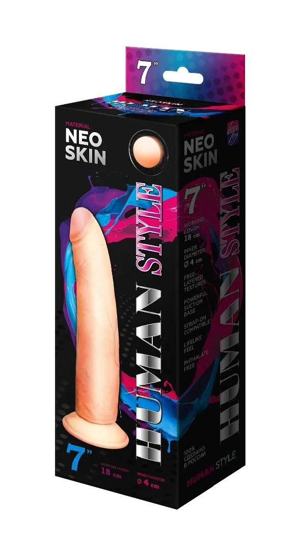 Реалистичный фаллоимитатор телесного цвета. Имеет форму члена с ярковыраженной головкой. Необычайно приятный, рельефный, выполненный из материала «Неоскин» , передающий эффект мягкой реалистичной текстуры кожи, не имеет швов. В основании имеется отличная присоска. Характеристика: общая длина – 18,5 см, рабочая длина-18 см, максимальный диаметр- 4 см. Упаковка- картонная коробка с принтом.