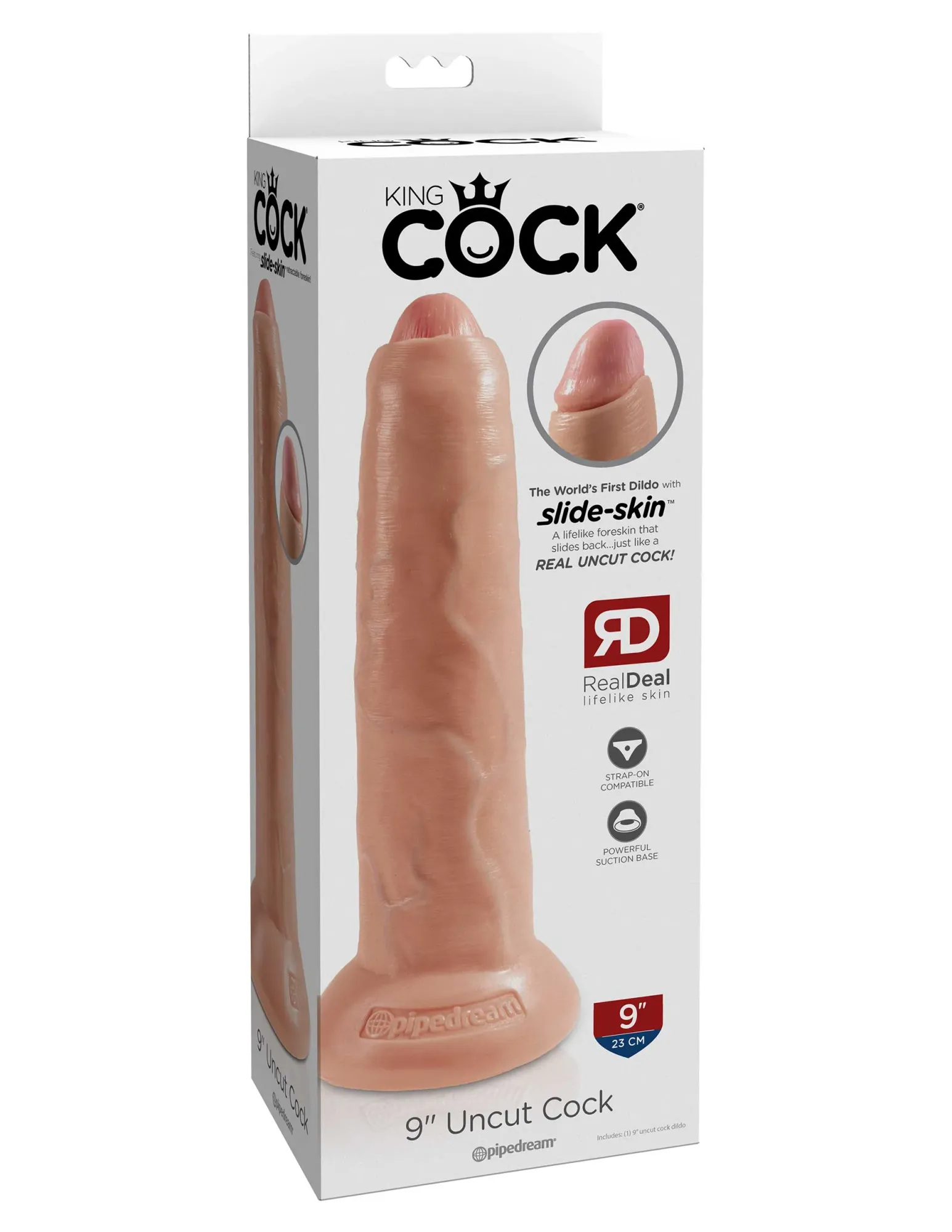 Фаллоимитатор King Cock Uncut с подвижной крайней плотью (длина около 23 см). Двойная плотность Slide-Skin.