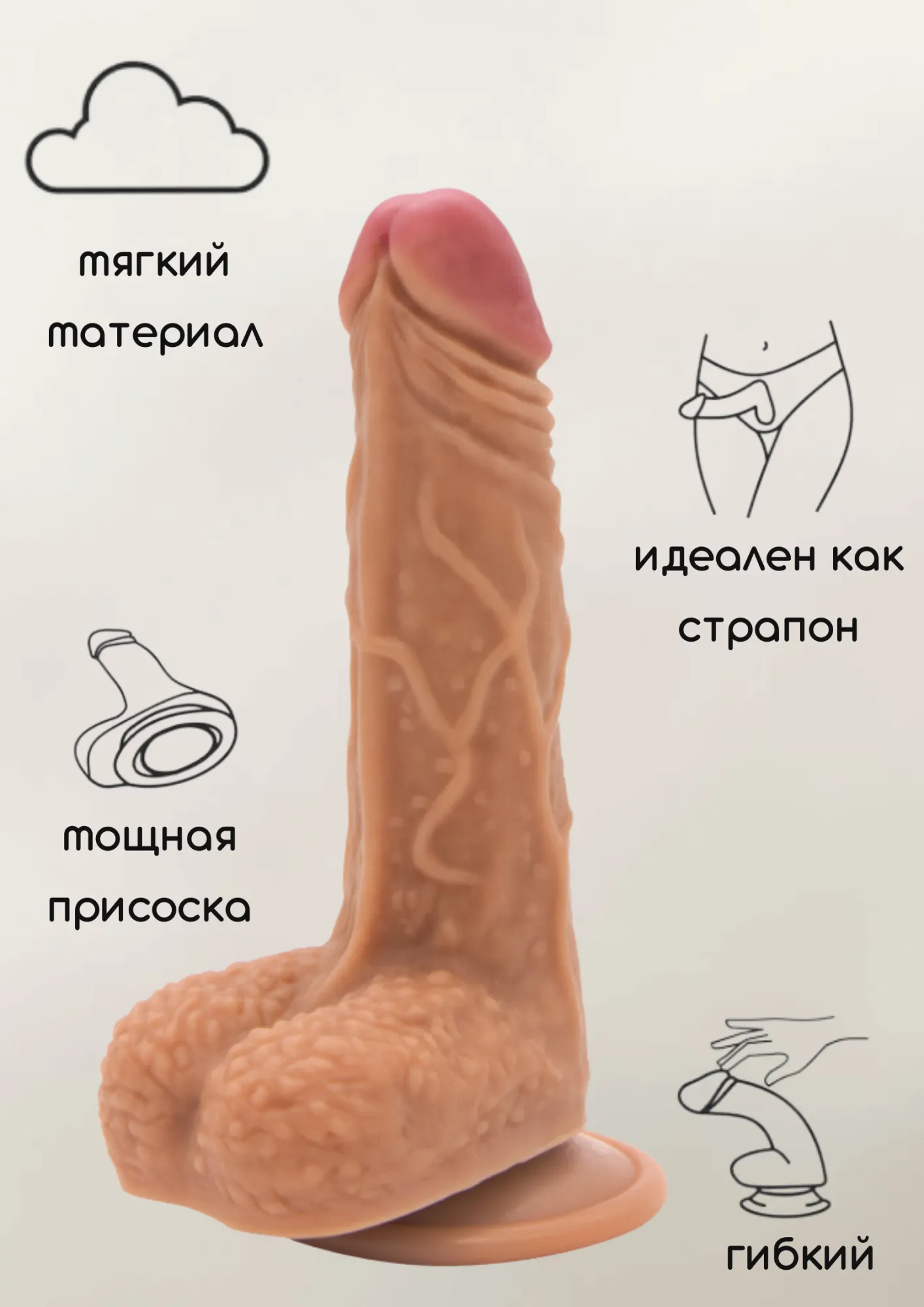 Гибкий реалистичный фаллоимитатор Calm изготовлен из приятного на ощупь и безопасного материала ПВХ, не содержит фталатов. Игрушка выполнена с рельефными венами, ярко выраженной головкой и мошонкой. Мощная присоска в основании позволяет закрепить игрушку на любой ровной поверхности. Фаллоимитатор можно использовать совместно с трусиками для страпонов. Игрушка проста в уходе: достаточно промыть её под водой с мылом до и после использования. В комплекте идет мешочек для хранения из нетканого материала. Длина 17,5 см, диаметр 3,5 см, рабочая длина 12 см.