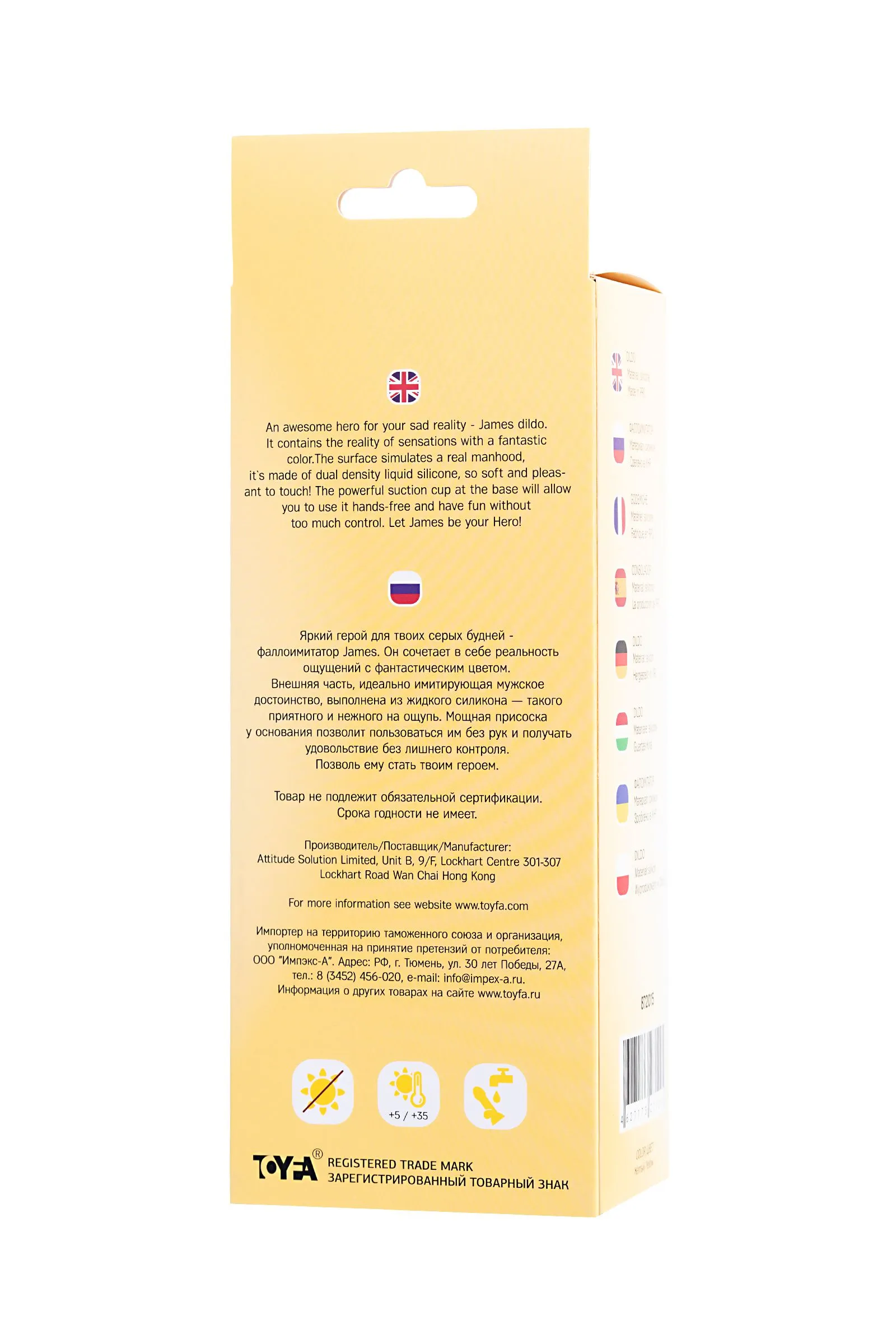 Яркий герой для твоих серых будней - фаллоимитатор James Он сочетает в себе реальность ощущений с фантастическим цветом. Внешняя часть, идеально имитирующая мужское достоинство, выполнена из жидкого силикона — такого приятного и нежного на ощупь. Мощная присоска у основания позволит пользоваться им без рук и получать удовольствие без лишнего контроля. Позволь ему стать твоим героем. Общая длина: 20 см Цвет: желтый