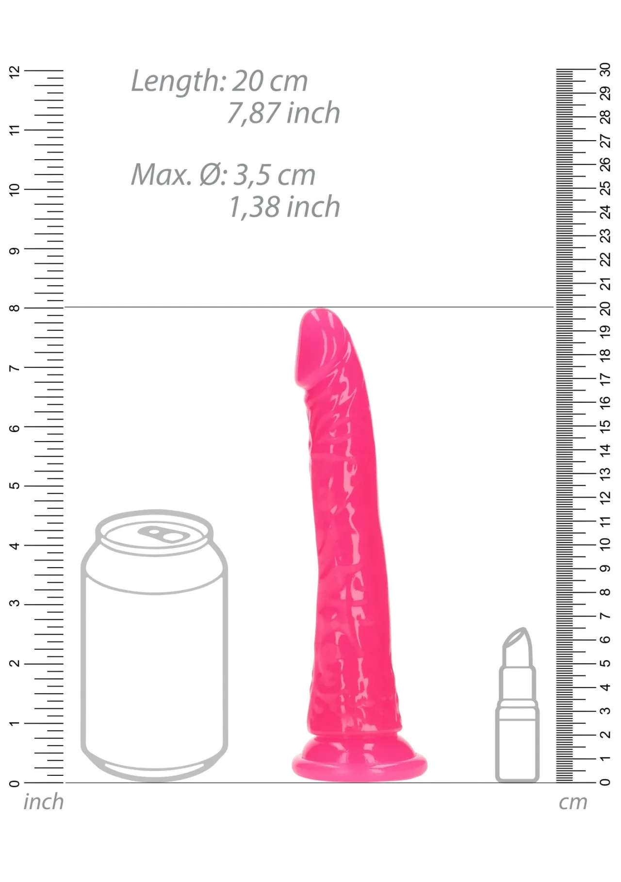 Фаллоимитатор Slim на присоске люминисцентный - 18 см