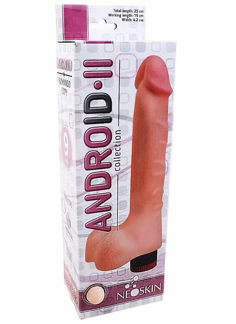 Фаллоимитатор с вибрацией Android Long выполнен в реалистичном дизайне из нежного материала Неоскин, очень похожего на настоящую кожу. Головка, ствол с венками и мошонка фаллоса детально проработаны, поэтому ощущения от массажа влагалища будут максимально реалистичными. Фаллос упругий и может равномерно изгибаться до 70 градусов. Он обладает функцией вибрации, управлять которой можно при помощи поворотного регулятора. Вибрация исходит из центра корпуса.