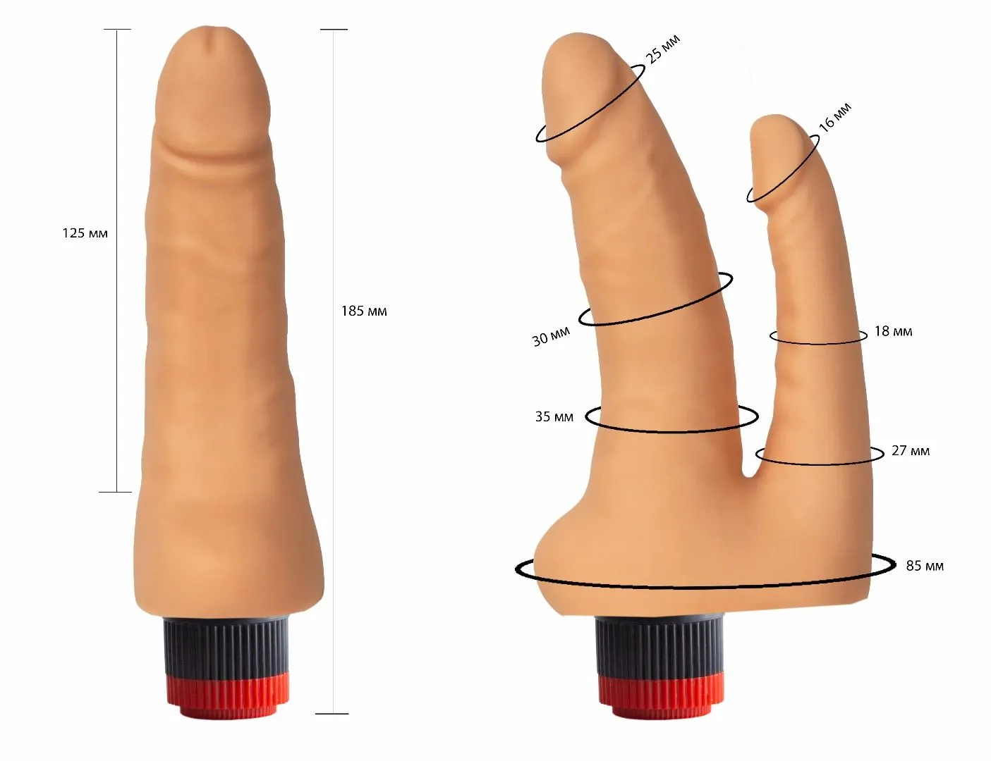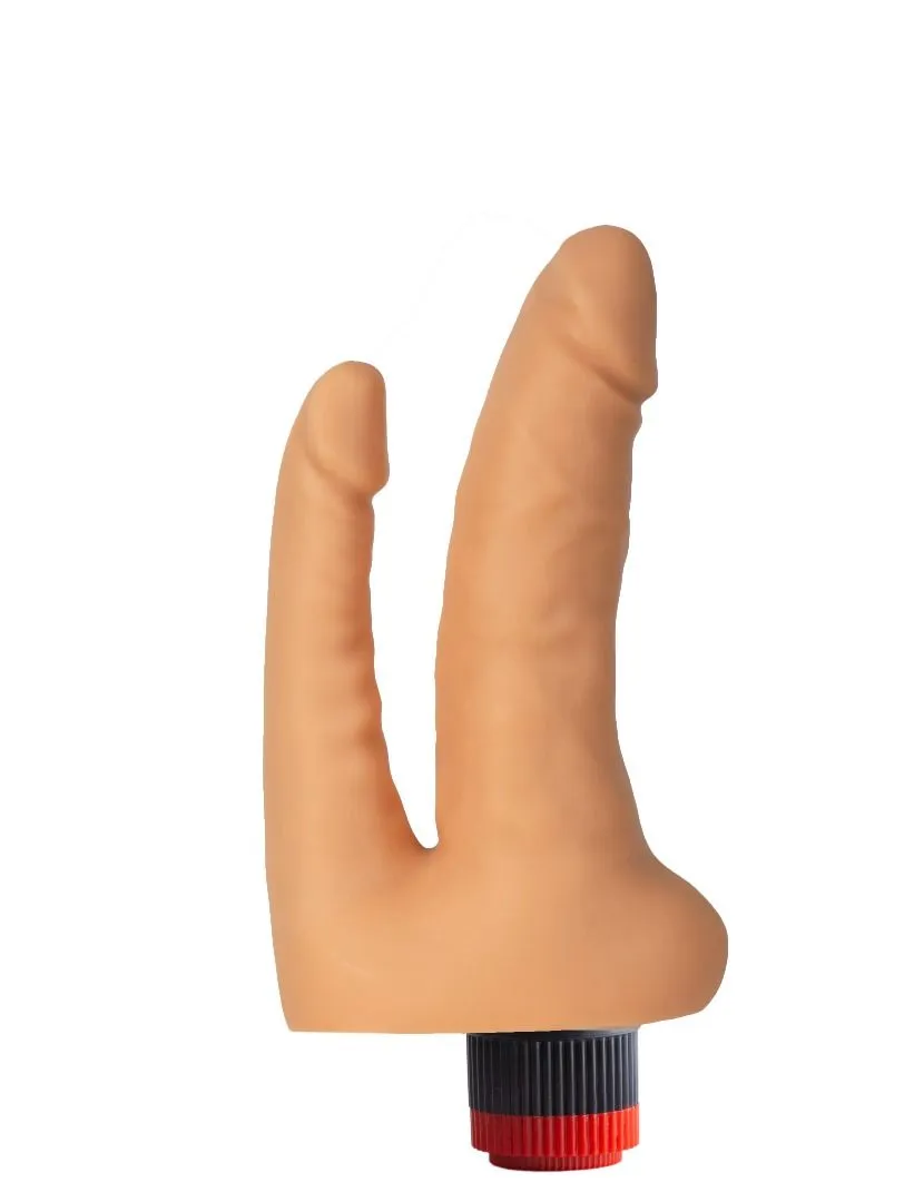 Фаллической формы вагинально – анальный вибратор с одним источником вибрации в толстом корпусе. Анальная часть из более жесткого материала. Вагинальный фаллос более эластичен. Источник вибрации в центре.