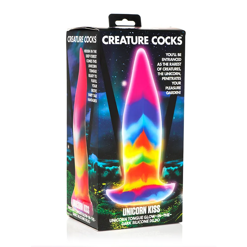 Добавьте новых чувственных ощущений с помощью этого яркого, светящегося в темноте фаллоимитатора в виде языка Единорога! Язык извилисто изогнут и имеет заостренный кончик, который проникает прямо в ваши дырочки, даря глубокое и неповторимое удовольствие. Этот шелковисто-гладкий фаллоимитатор, изготовленный из высококачественного силикона без фталатов, прочный, гибкий и идеально подойдет как вам, так и вашему партнеру!